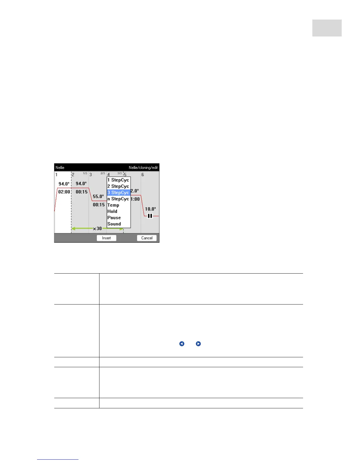 n StepCyc Cycle program step with an adjustable number of temperature steps. After this