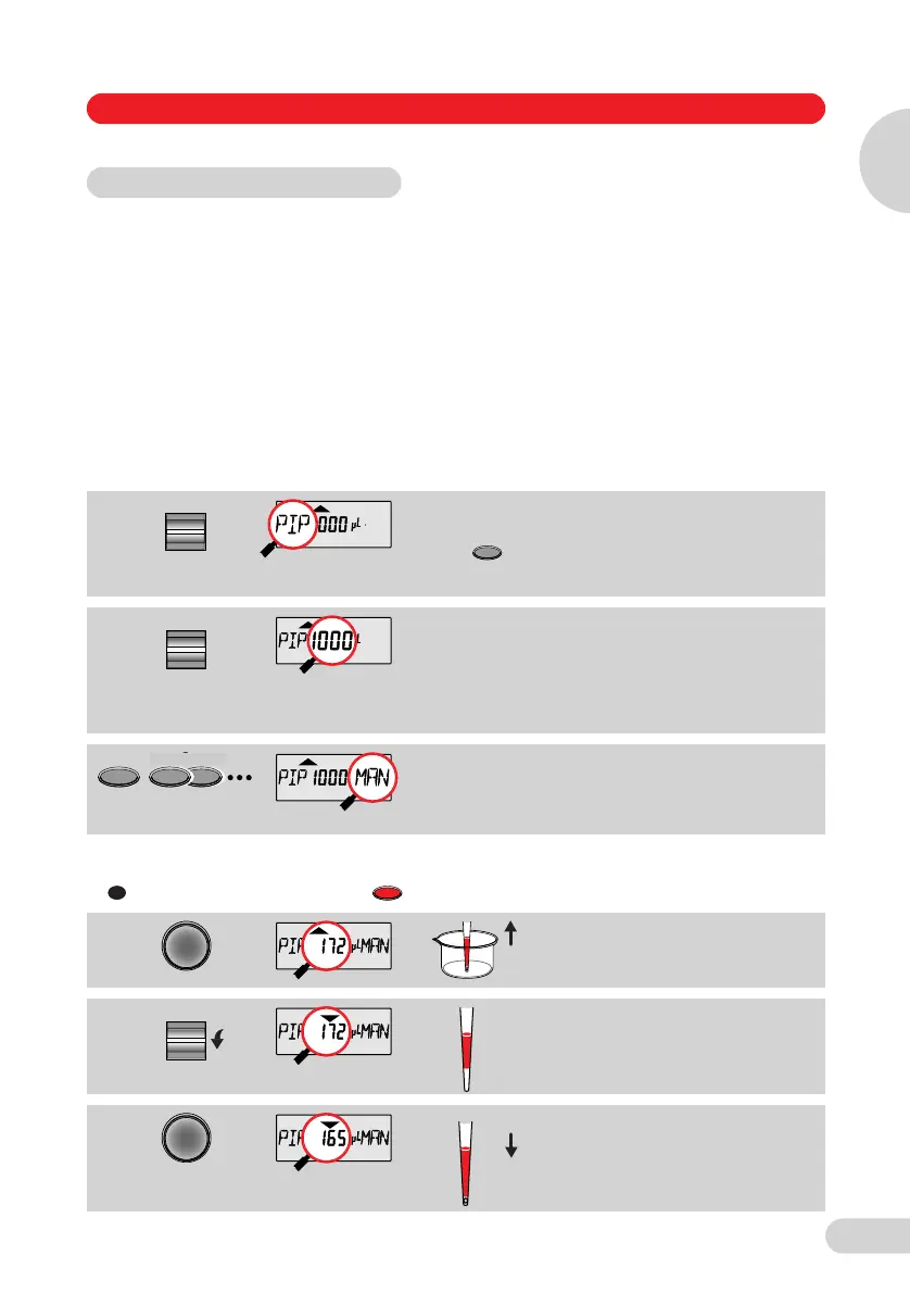 The volume of aspirated liquid appears in the display. If necessary, dilute the liquid to the