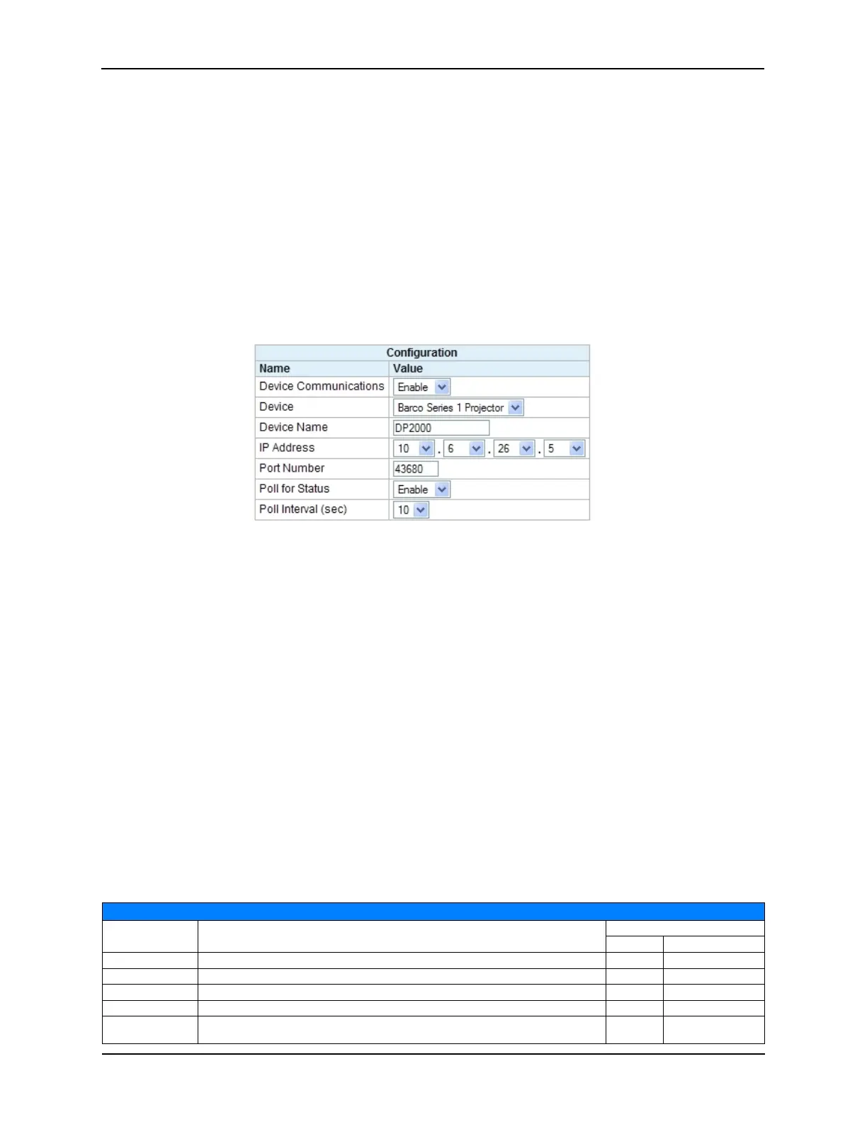 must be Enabled. The Poll Interval is the time interval in seconds that the projector is polled for