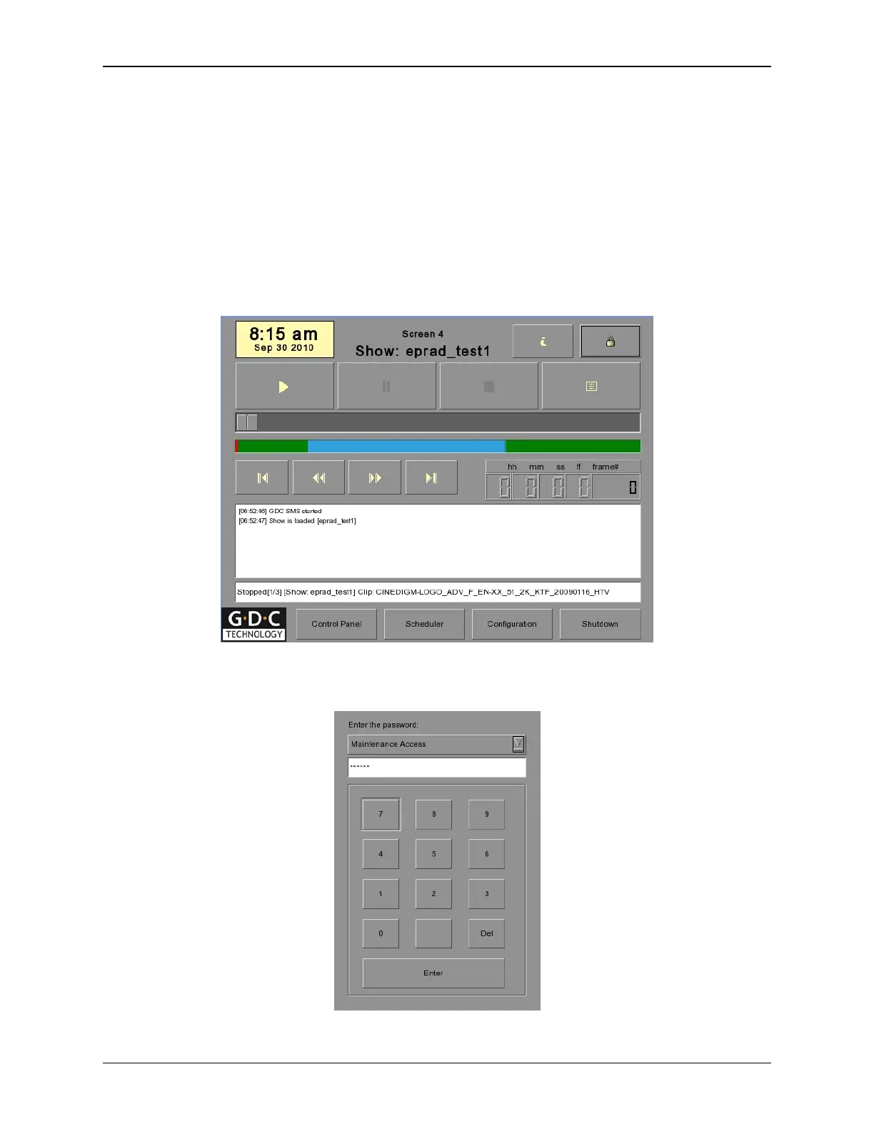 Use the on-screen keypad to enter the Maintenance Access password. Press the [Enter] button.