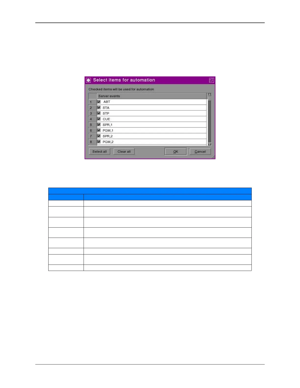 Note: Server Events 1 - 44 are used for eCNA program control only. Events 45 - 84 are used for