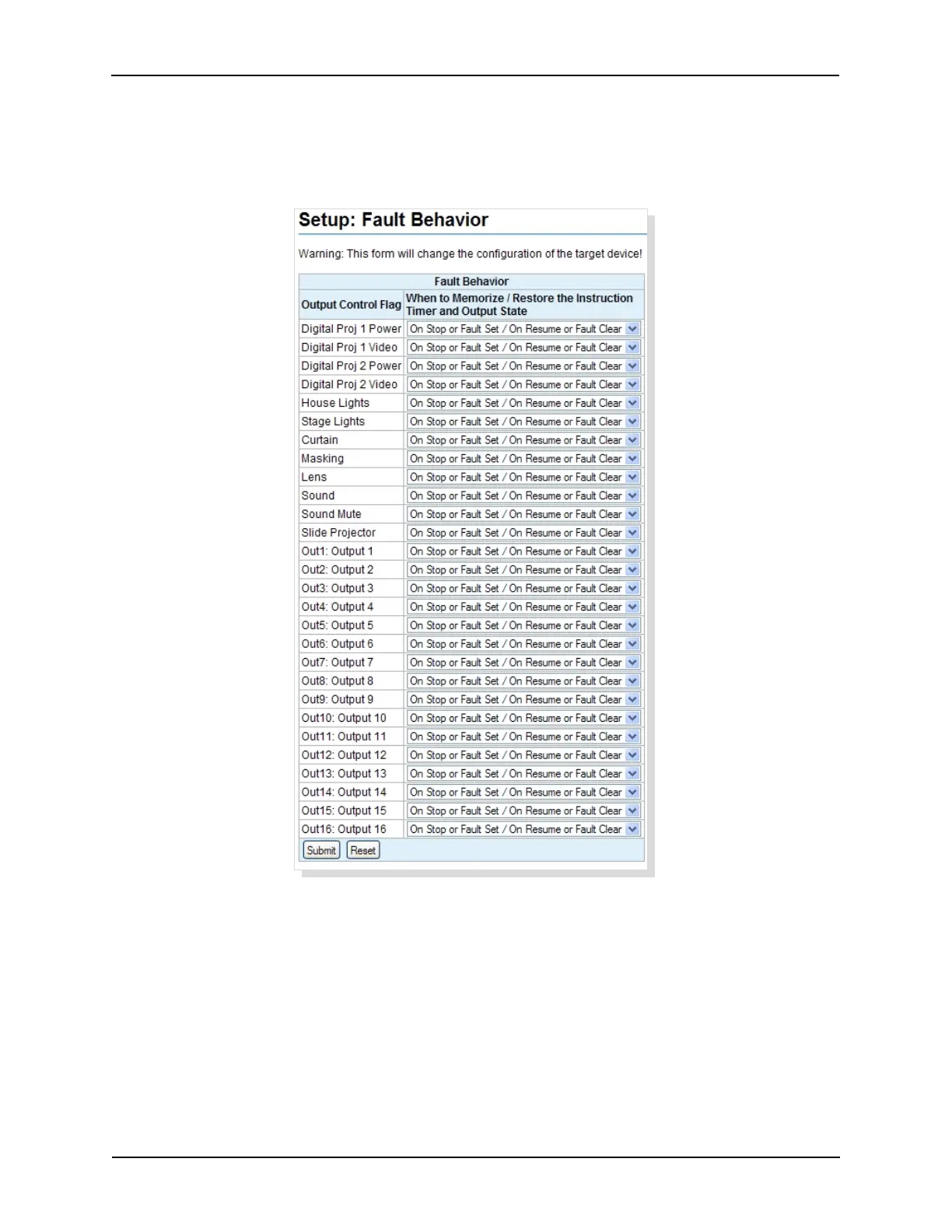 the Fault Behavior screen allows you to modify this behavior for individual output flags.