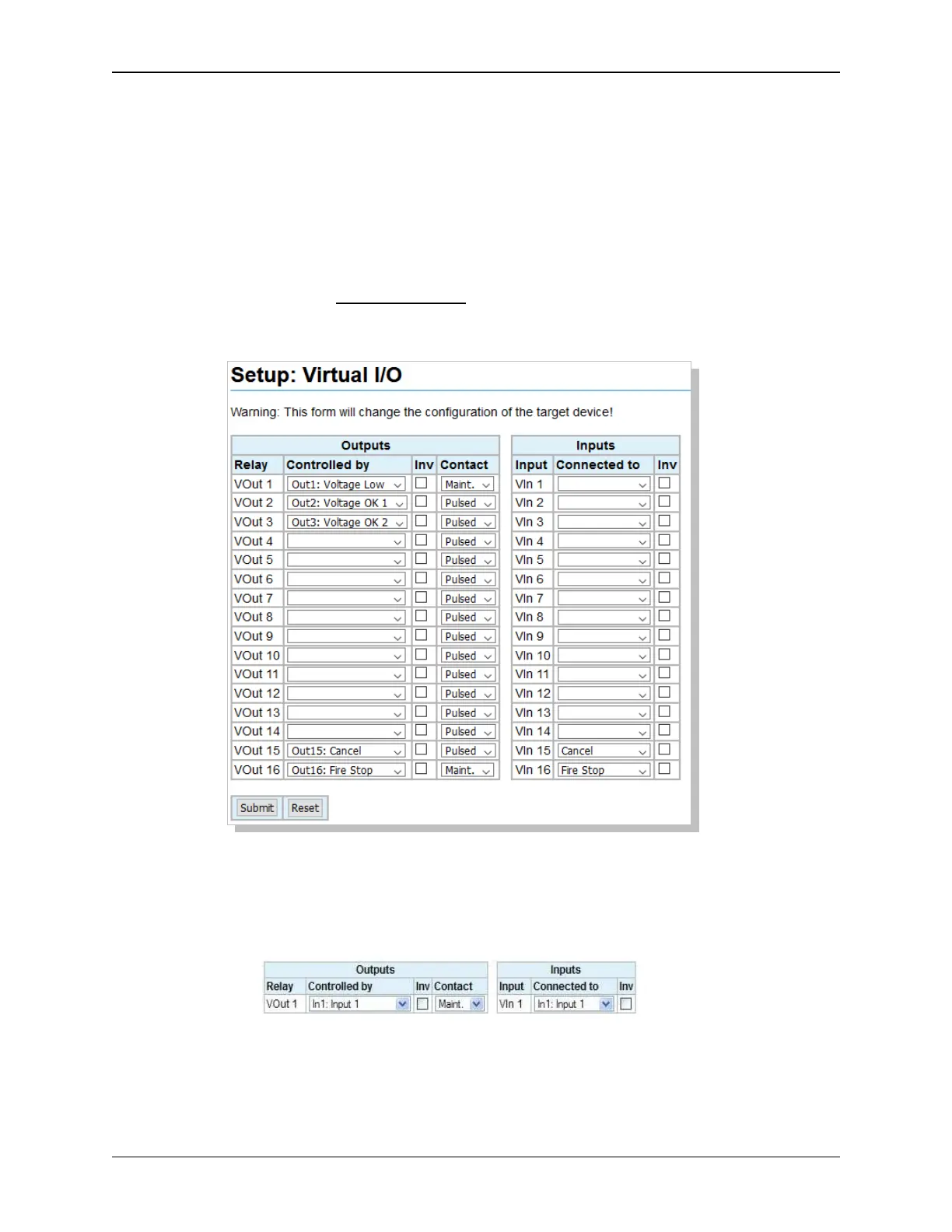 Click on Virtual I/O under General in the Setup Menu. This screen is used to configure the Virtual