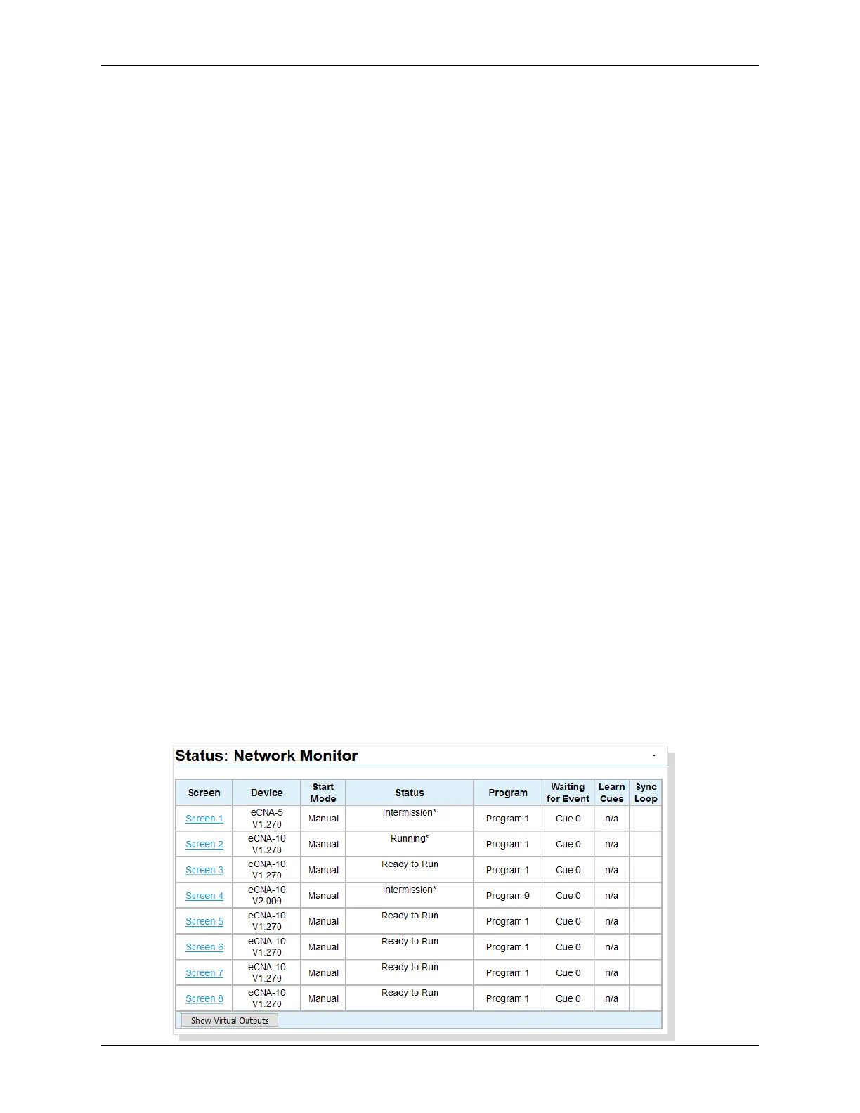 Click on Network Monitor in the Status Menu. This screen displays the status of all eCNAs that are