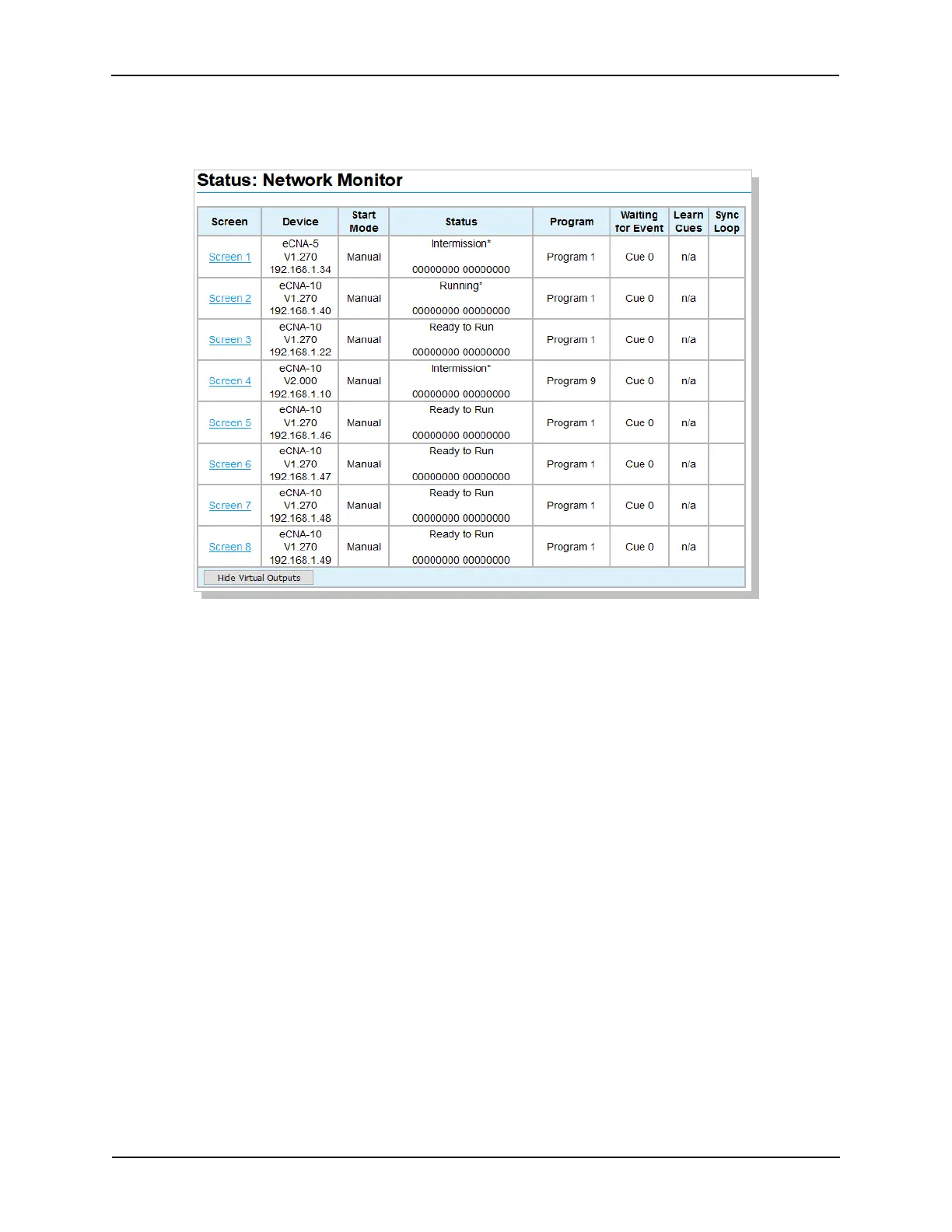 Click on the Show Virtual Output button to display the Virtual Outputs and IP addresses of all