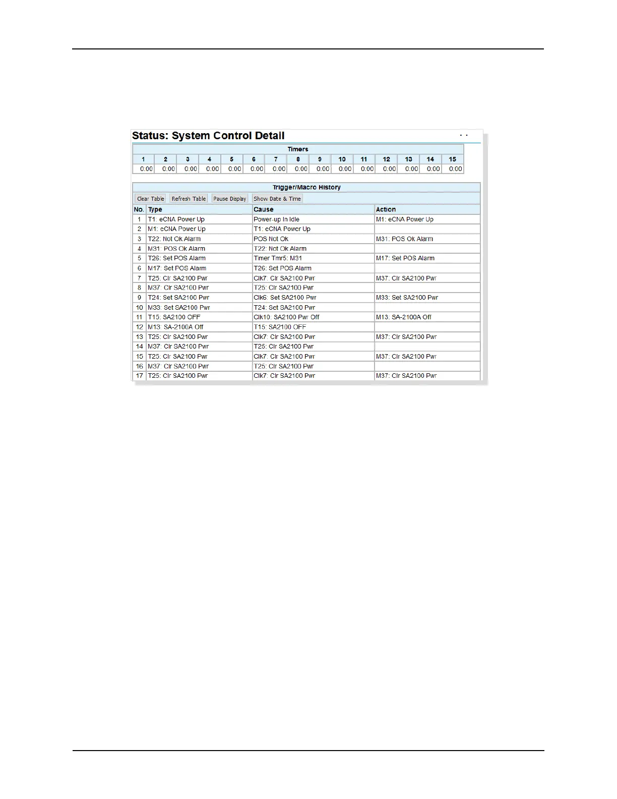 purpose timers and a history of executed Trigger and Macro events. This screen is useful for