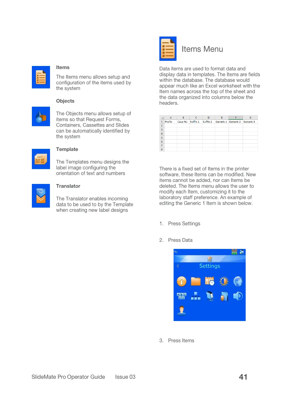epredia SlideMate Pro - Items Menu Configuration; Item Setup and Management; Object Definition and Assignment; Template Design and Creation