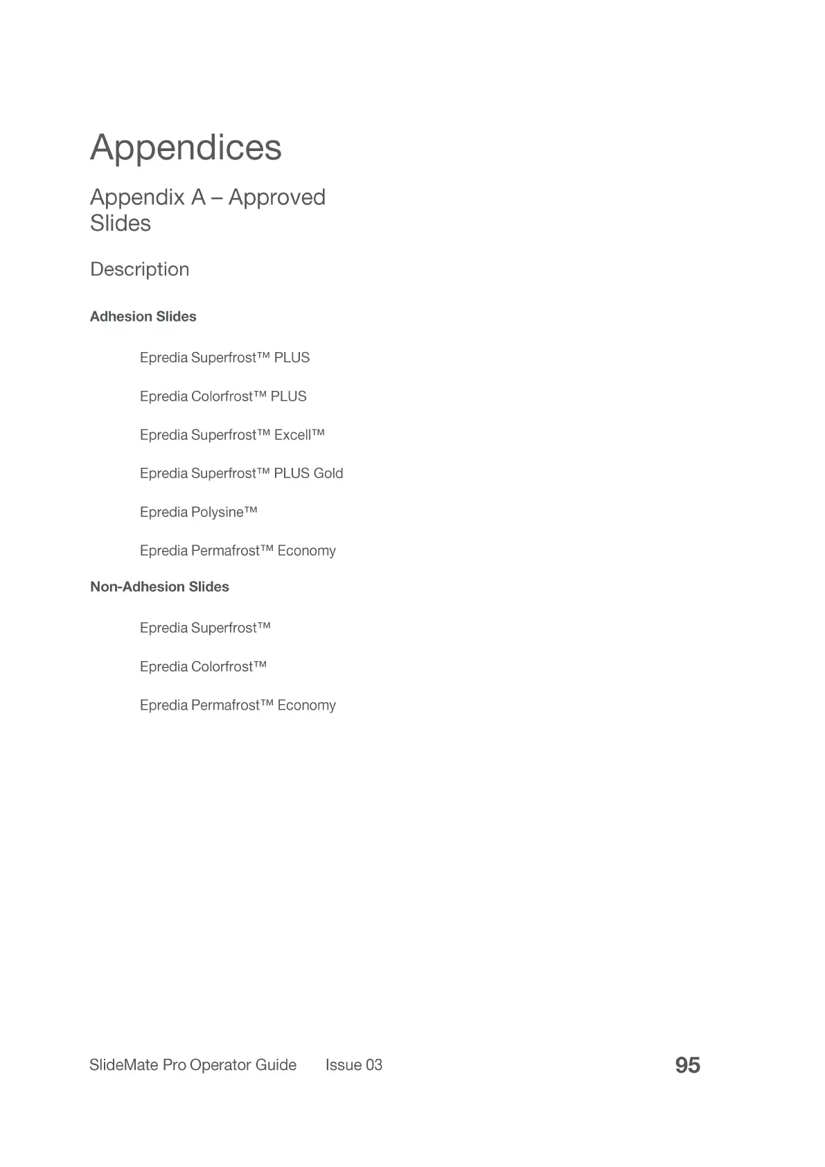 epredia SlideMate Pro - Appendices; Appendix A - Approved Slides