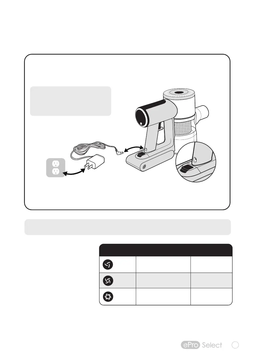 Place hand vacuum on a flat, stable surface. Connect the power cord directly to charging port located