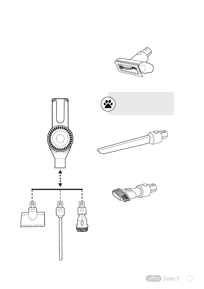 pet fur on floors, furniture and bedding. Use with any of the 3 tools for the right fit for the job.