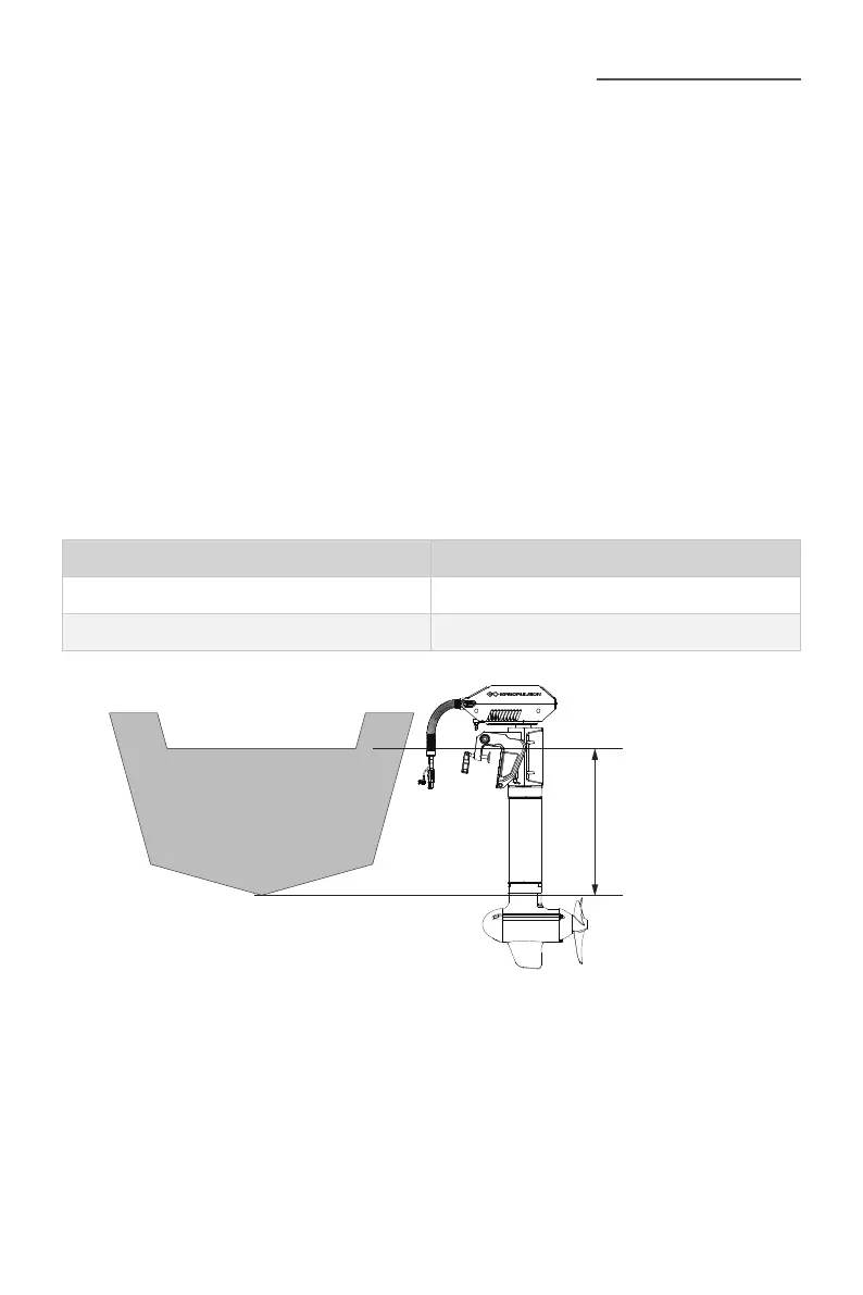 boat. The top of the propeller should be 100mm to 150mm below the water.