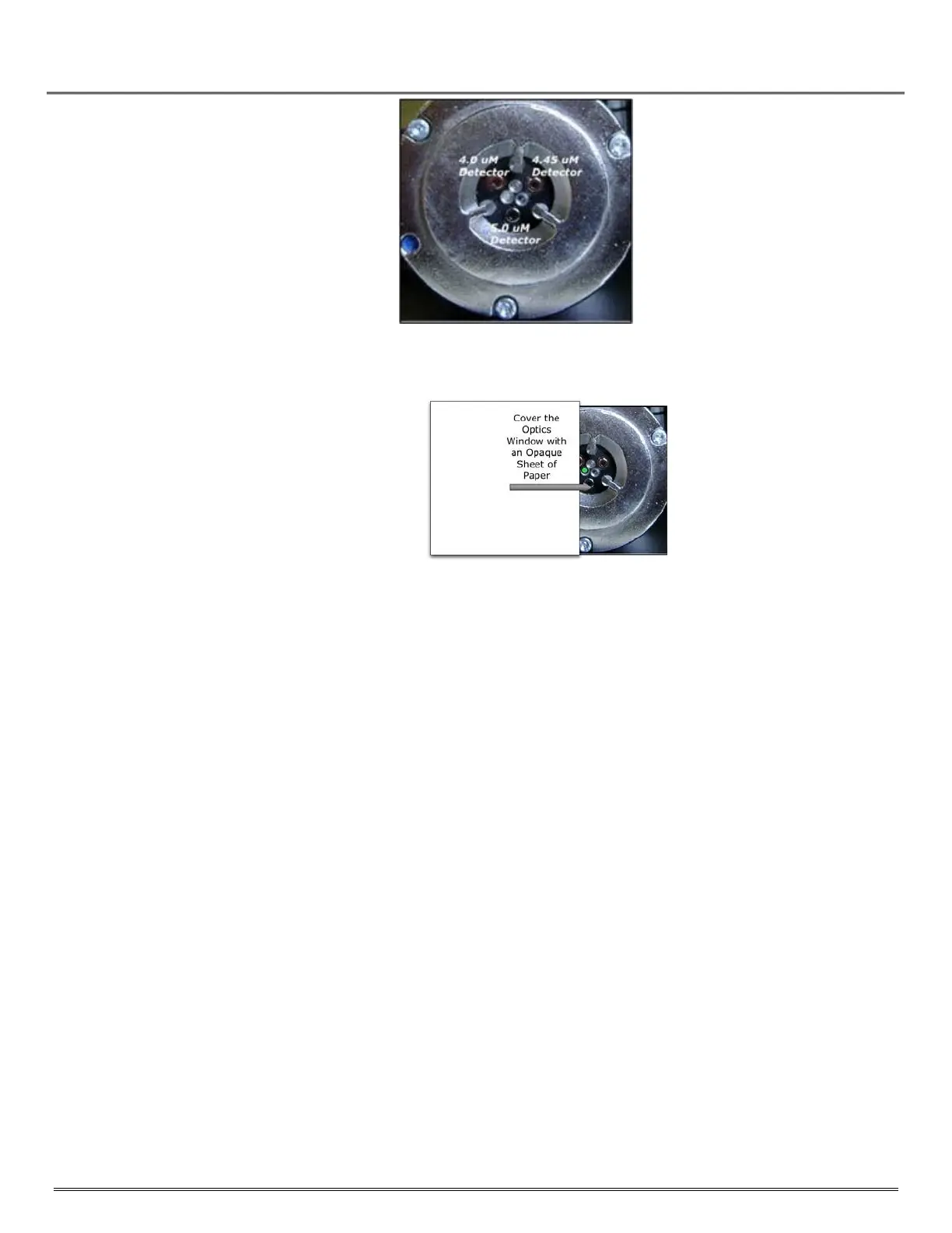 good reflective properties (white sheet of paper) in front of the optical window of IR channel for 15‐20 sec.