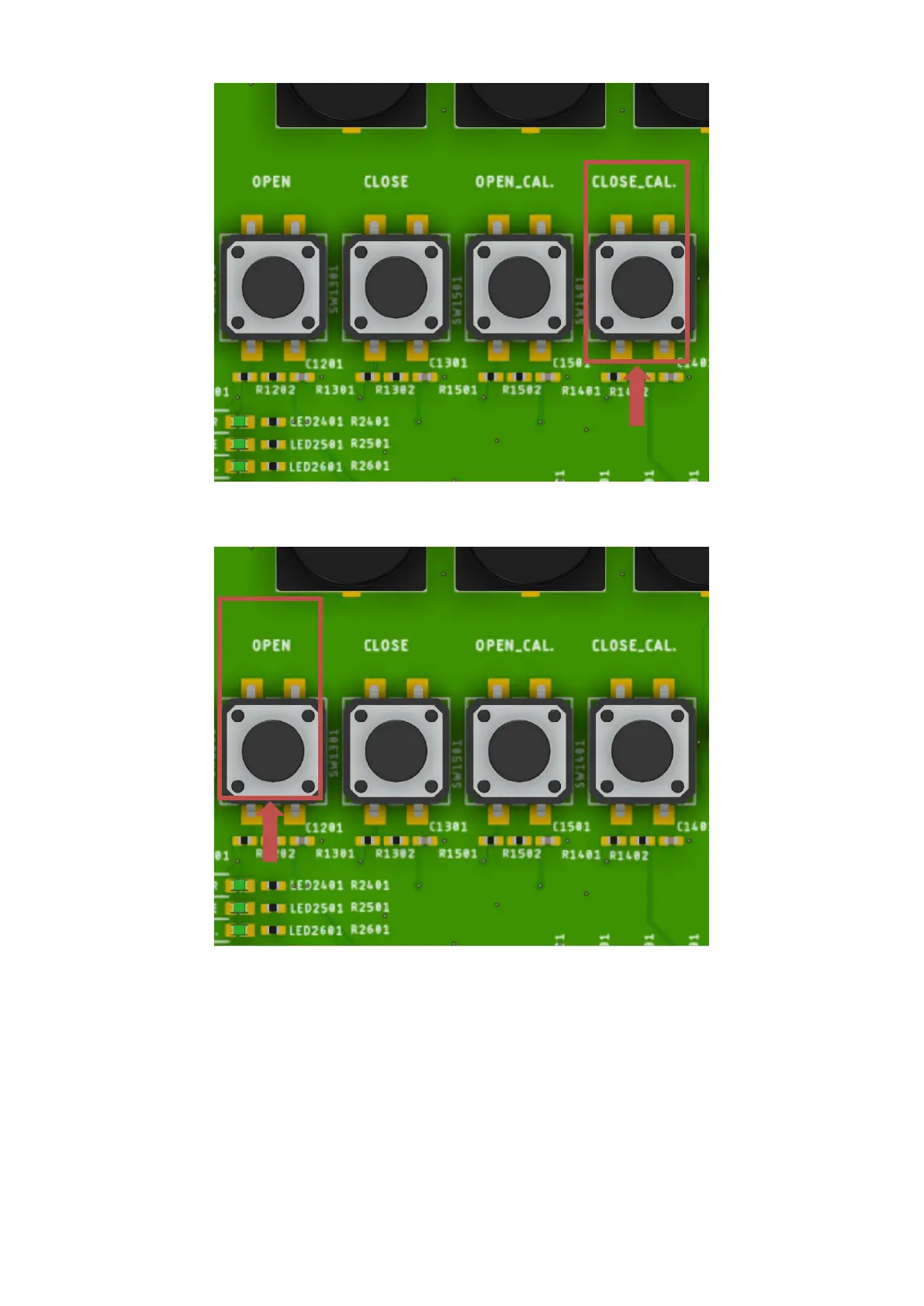 When the close position is reached press the 'CLOSE_CAL.' Button.