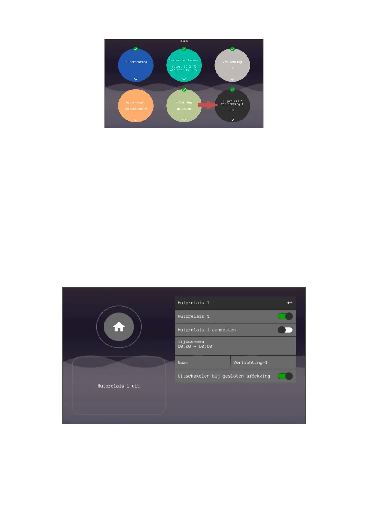 The auxiliary relays can be operated by going to the respective controller on the touchscreen. Each auxiliary relay has its own menu. There