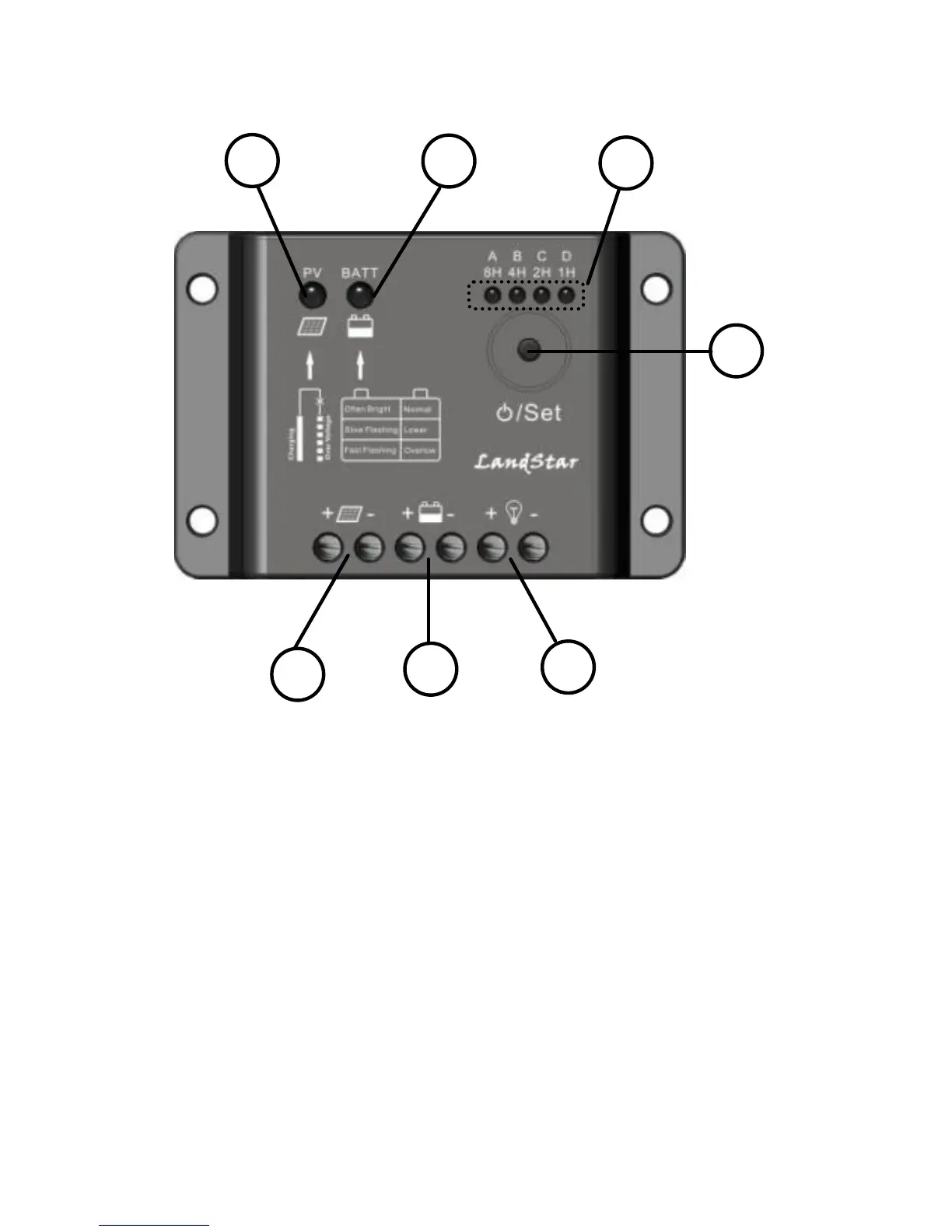 Four LED indicators that show load work mode and status.