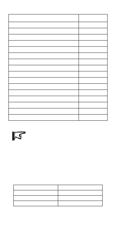 button till the desired number appears according to the following table. The