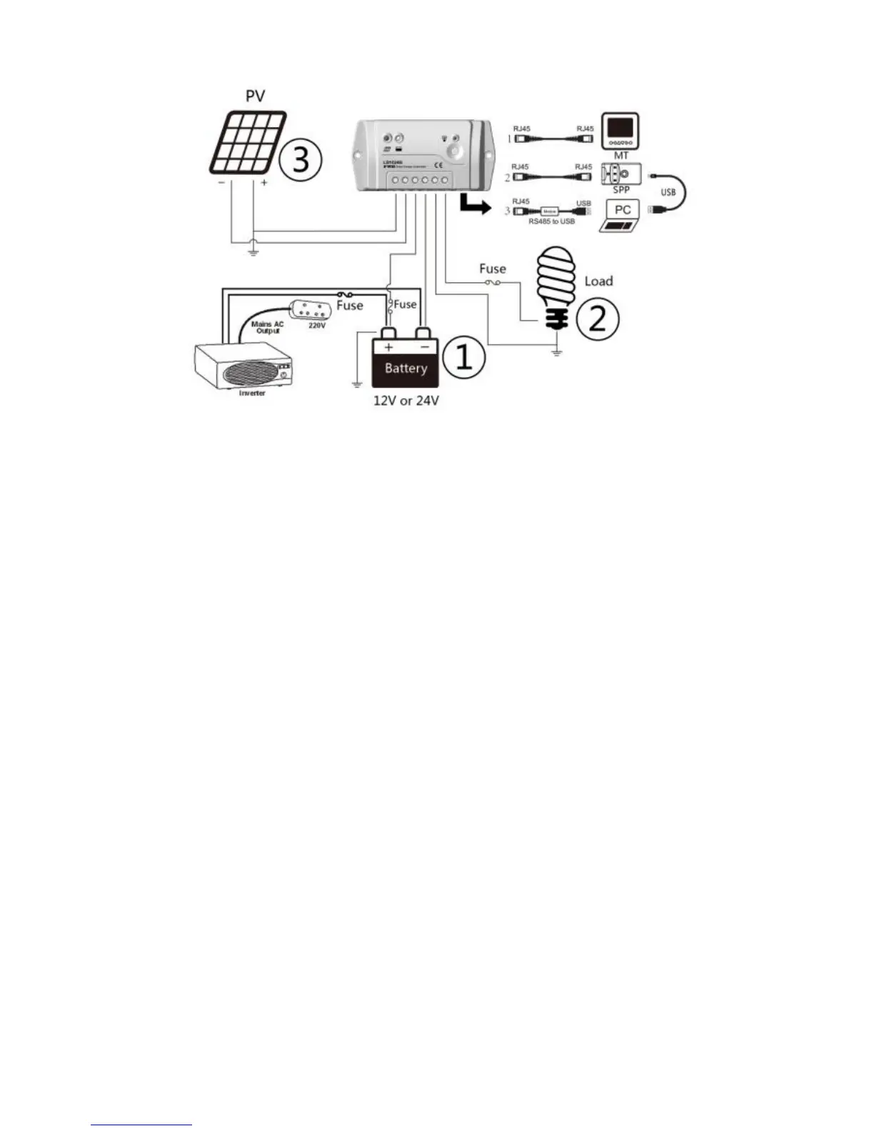 1, Connect components to the charge controller in the sequence
