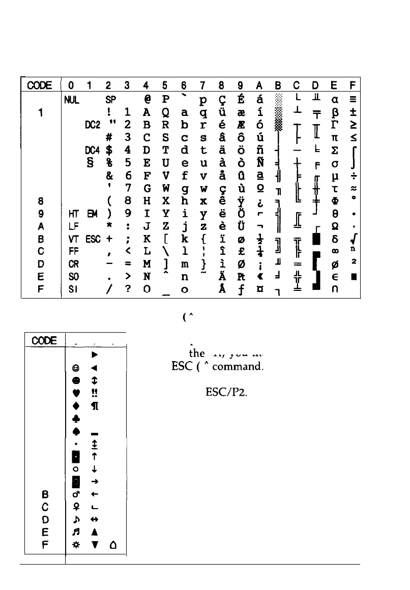 Characters available with ESC