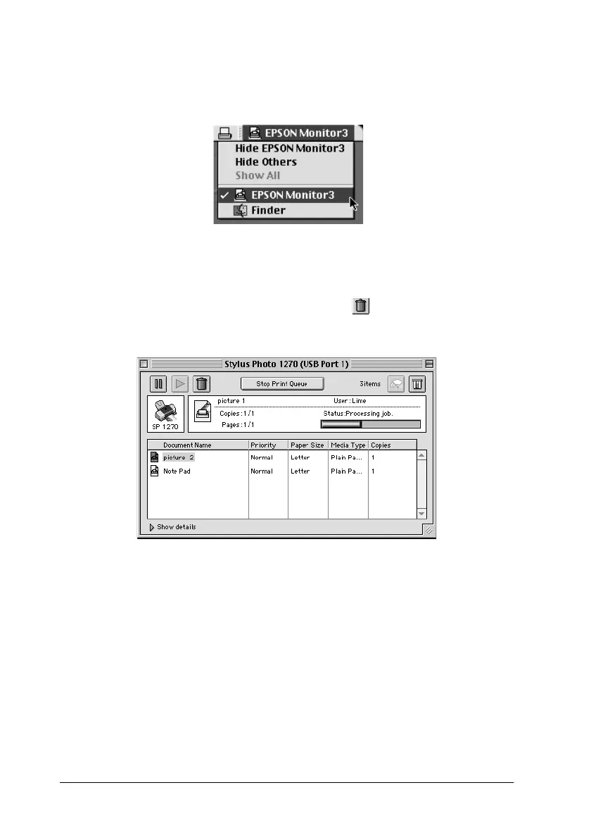 3. Click the name of the document which is printing in the