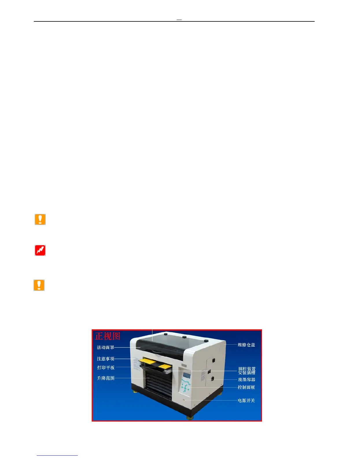Note:1,in this manual we also call this Flatbed Inkjet Printer to Printer。