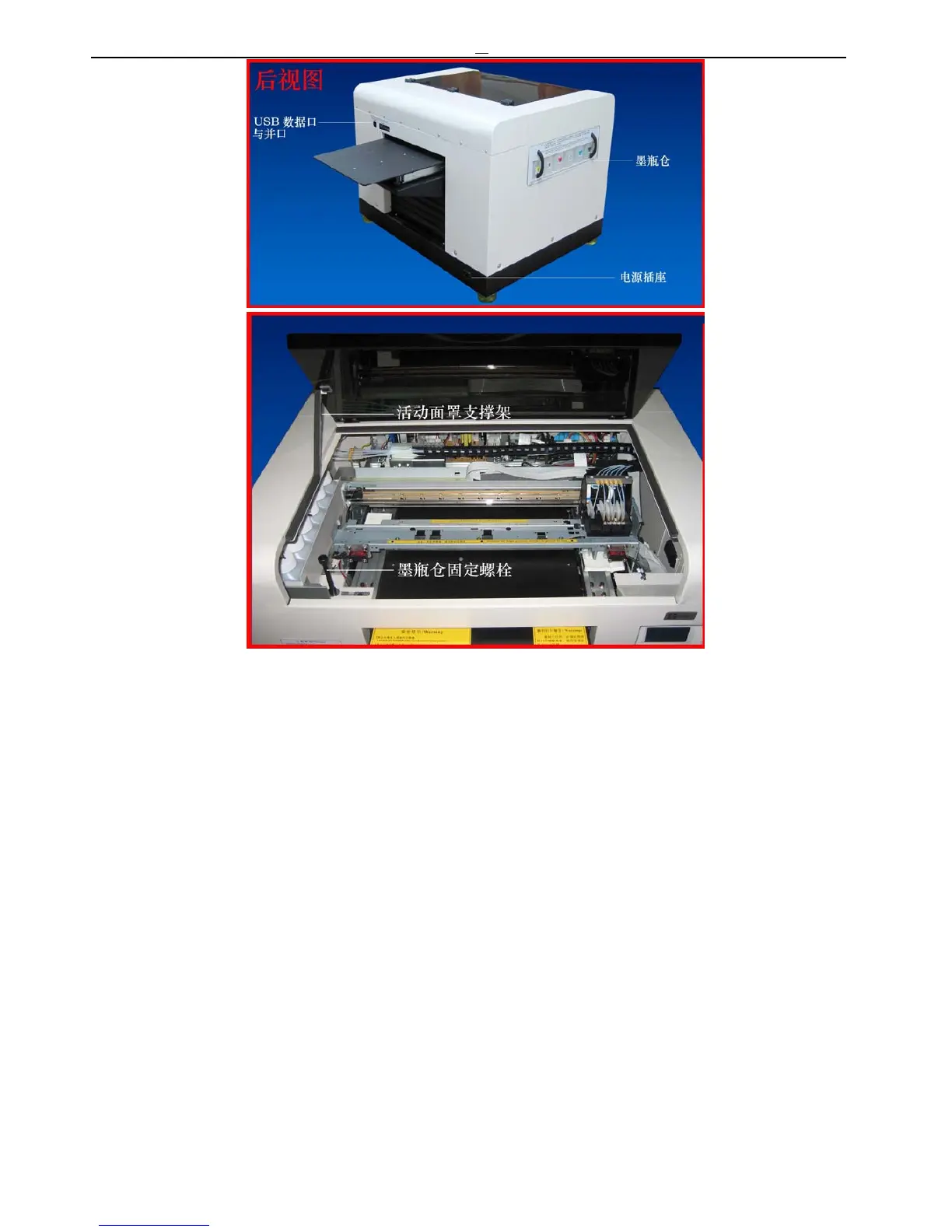 1.Place the printer to a good working flat roof,keep enough space for airiness。