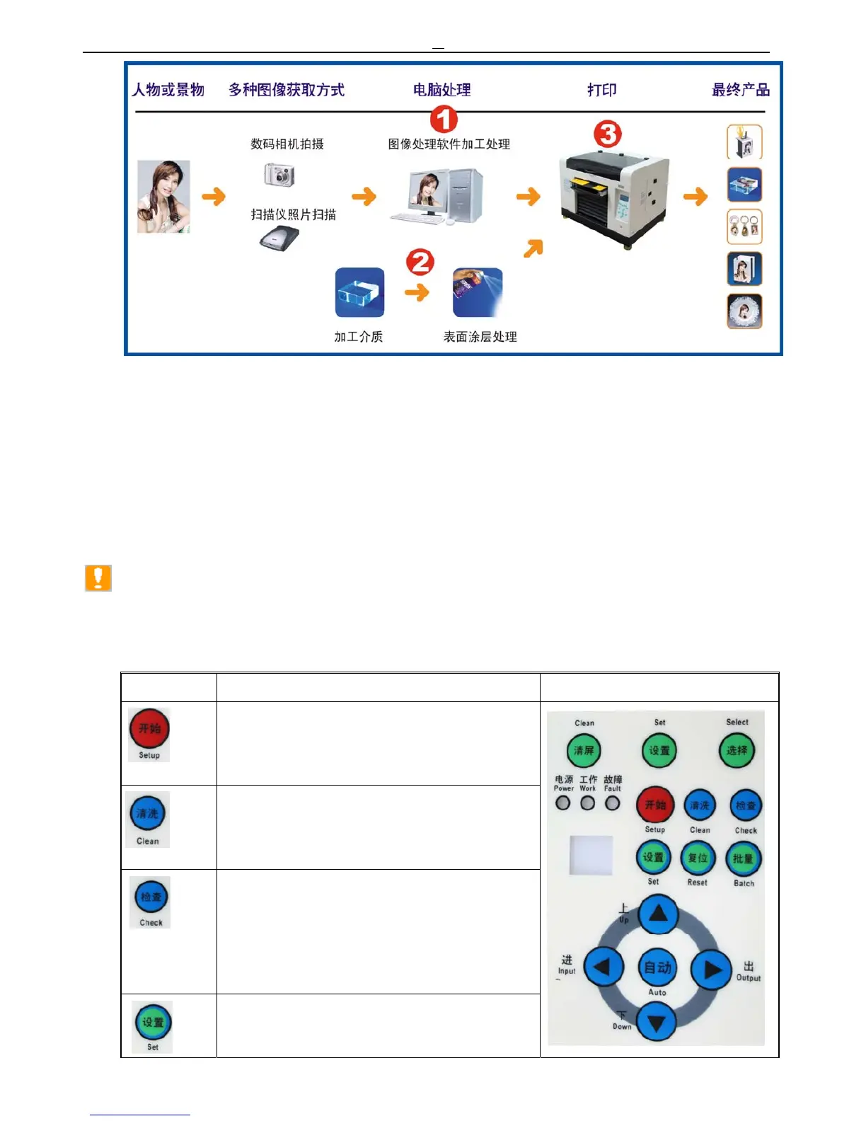 The button indicating to the Panel of the Flatbed Printer.