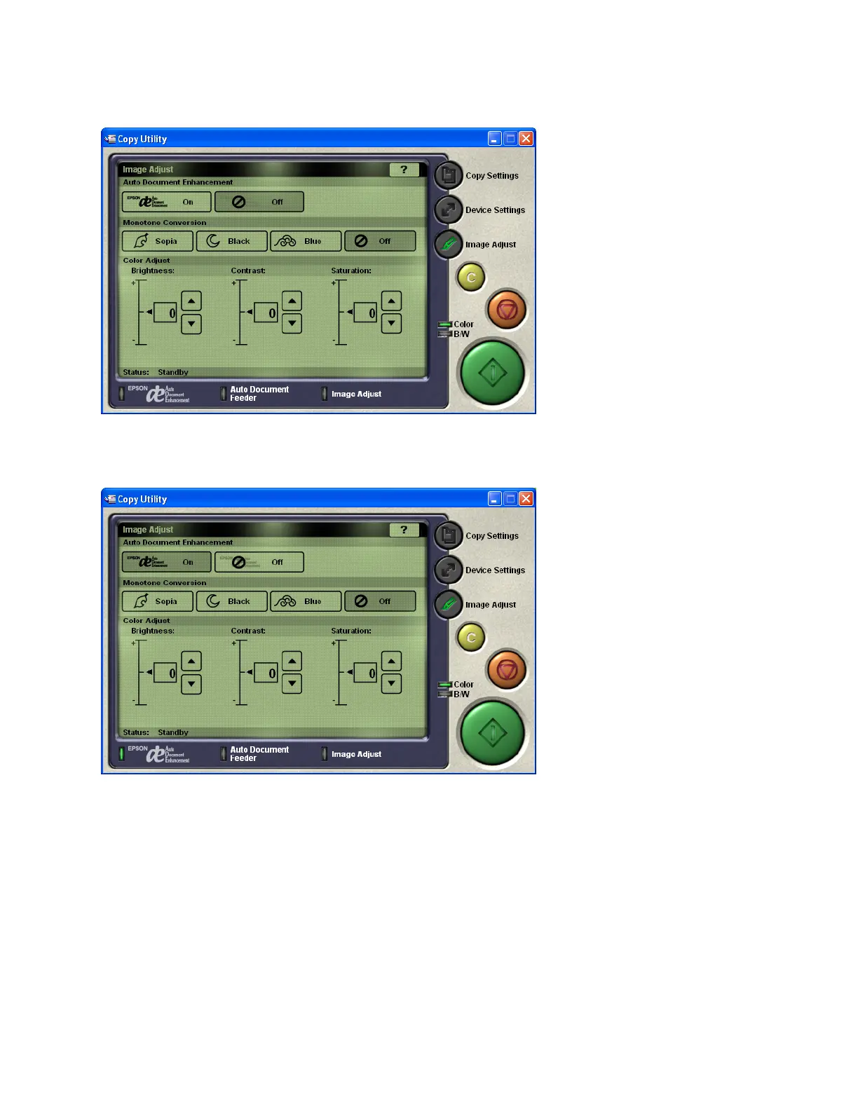 Click on the “Image Adjust” button. You will notice the Auto Document Enhancement OFF