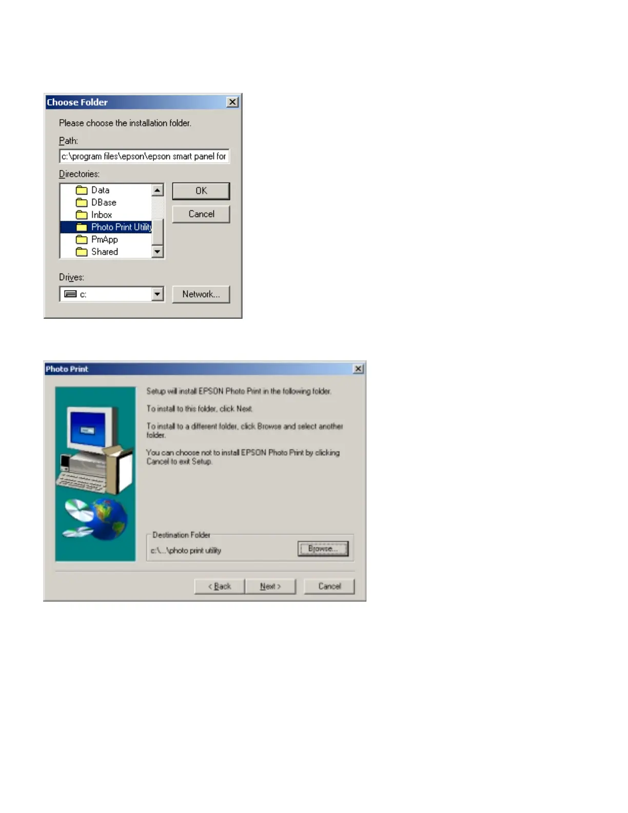 7. Browse to the following location: "C:\program files\epson\epson smart panel for scanners\photo print utility," and click OK