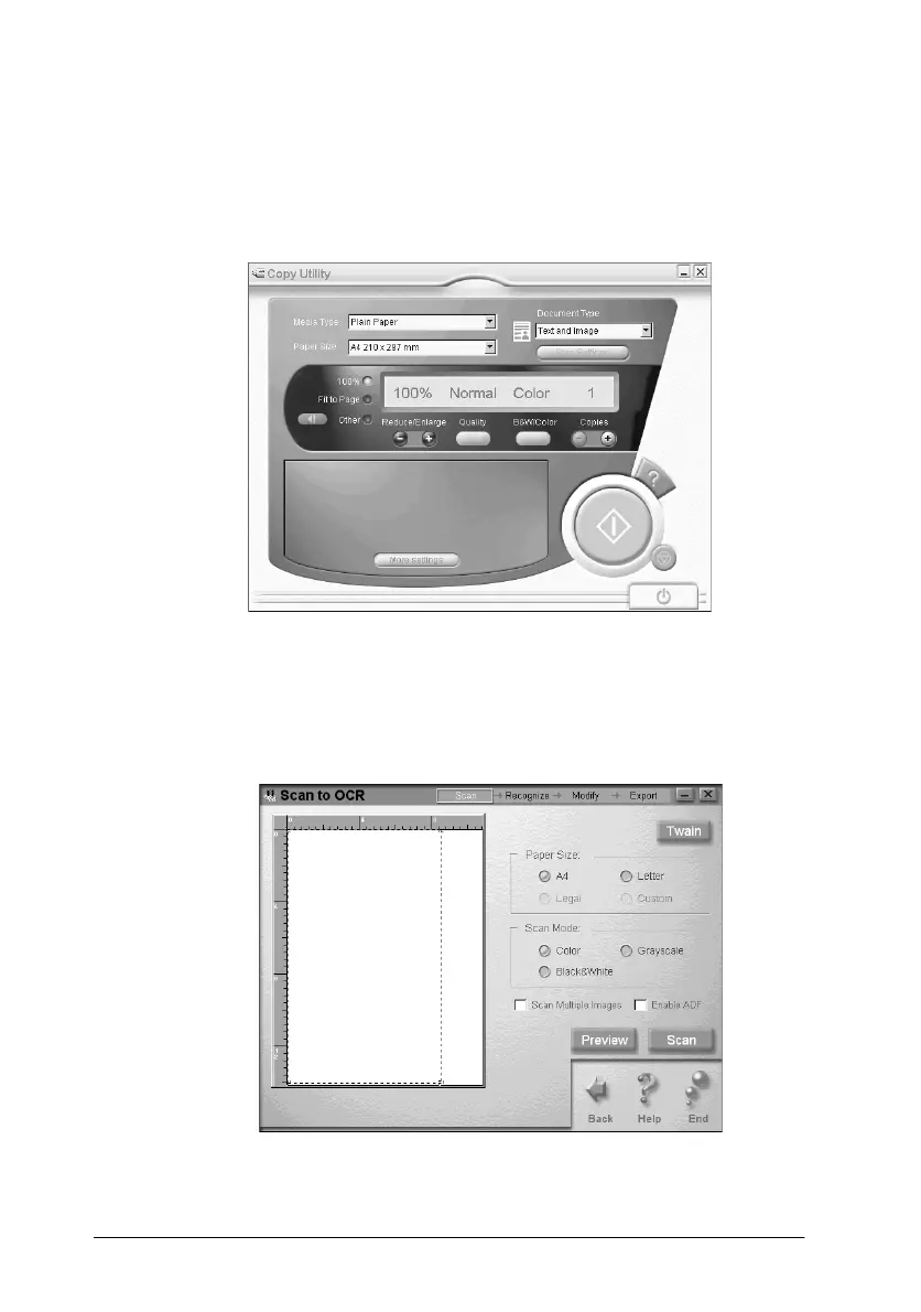 Copy turns your EPSON Stylus Scan into a digital copy machine.
