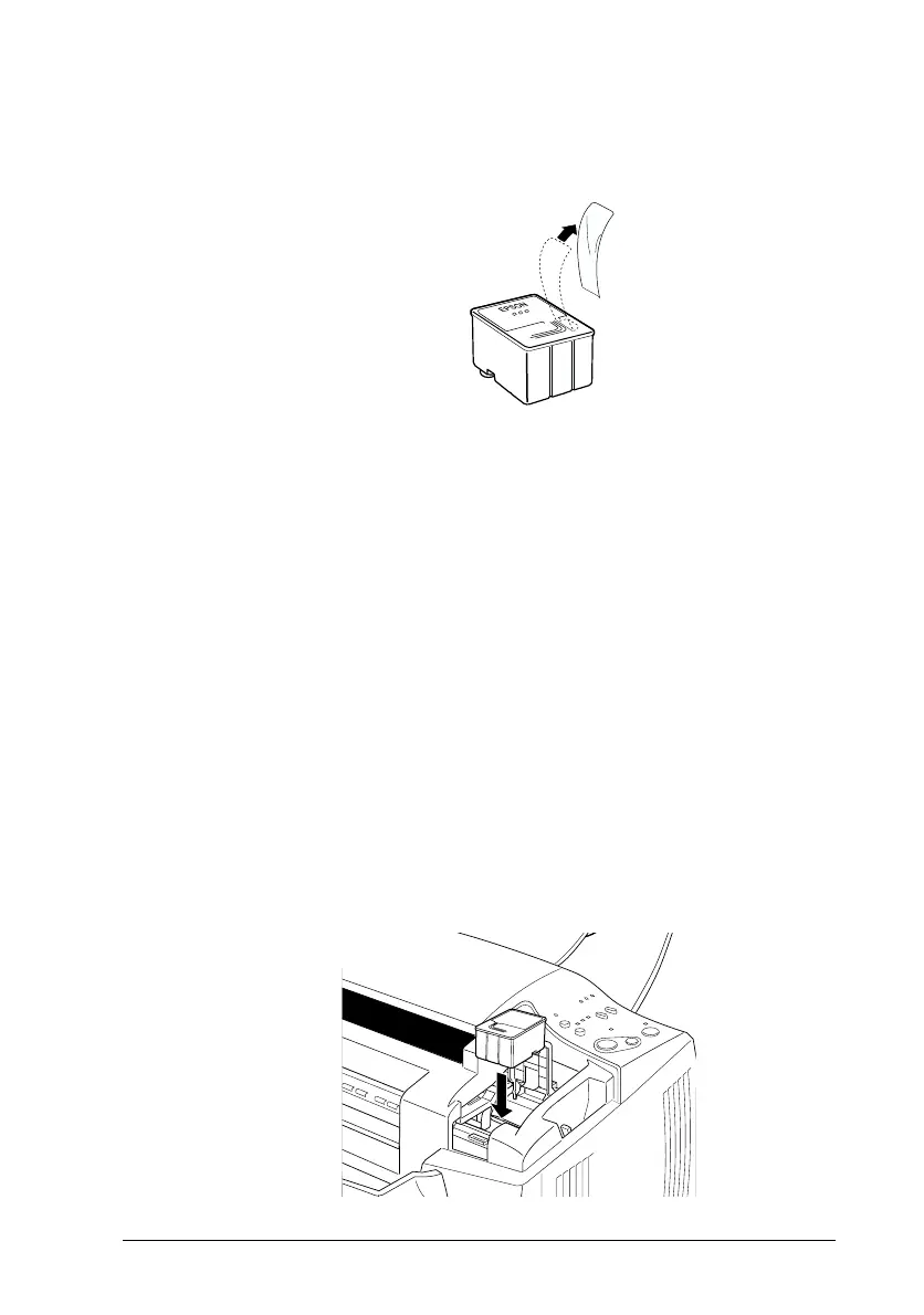 the label on the cartridge facing up. Then lower the ink