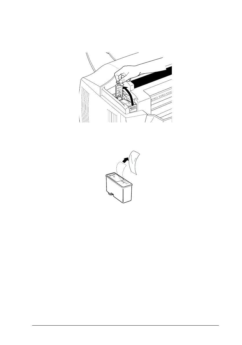 8. Lift the ink cartridge clamp. Then lift the cartridge out of the