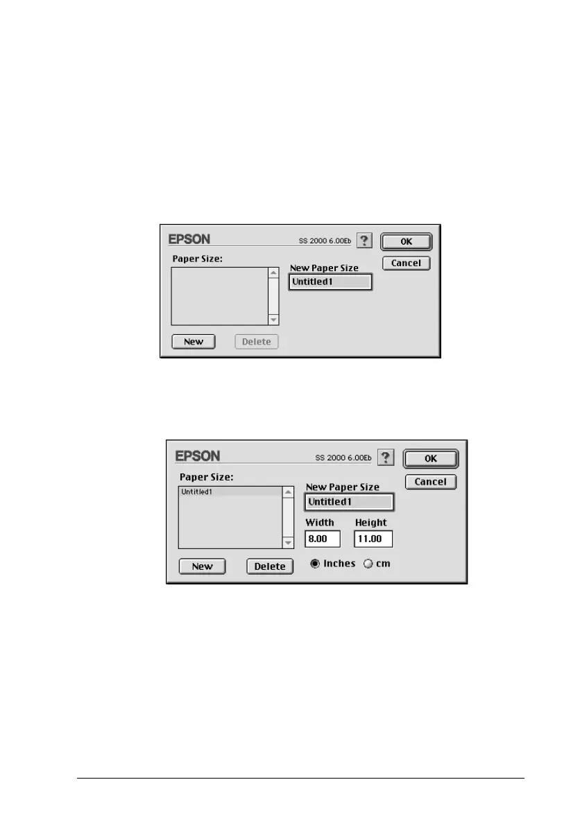 3. Type a unique name for the paper size in the New Paper Size