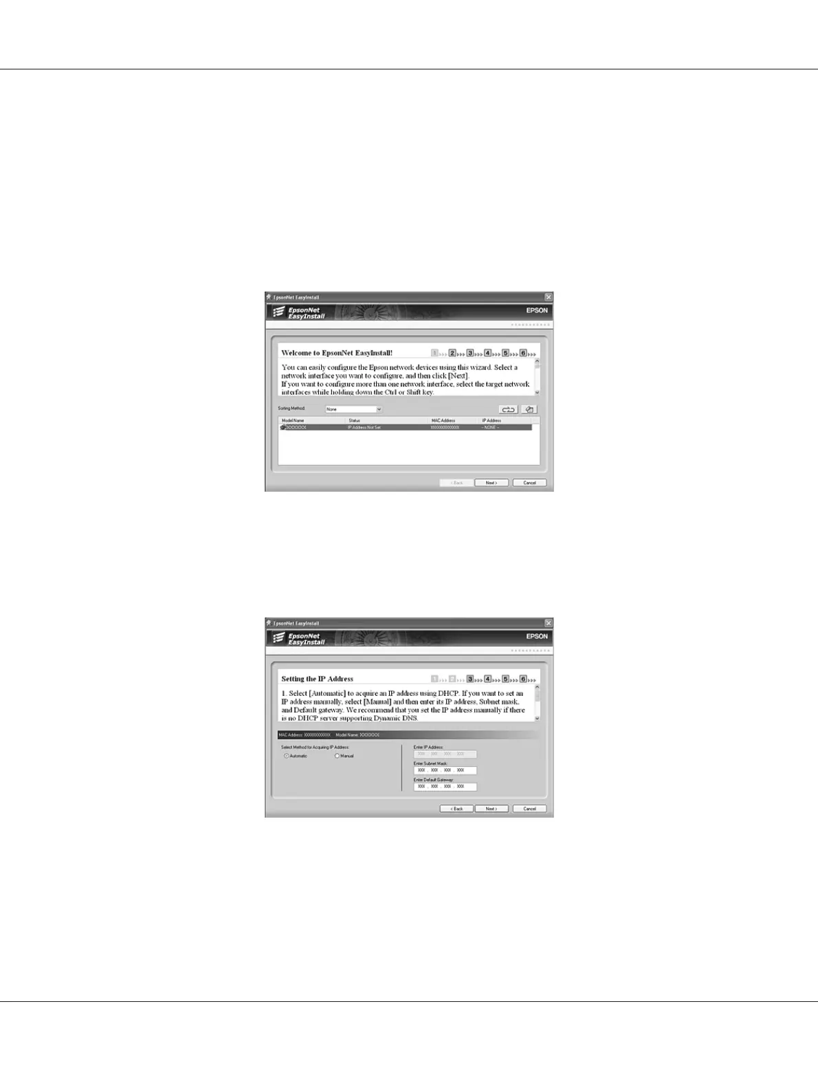 7. EpsonNet EasyInstall starts. Select the printer and then click the Next button.