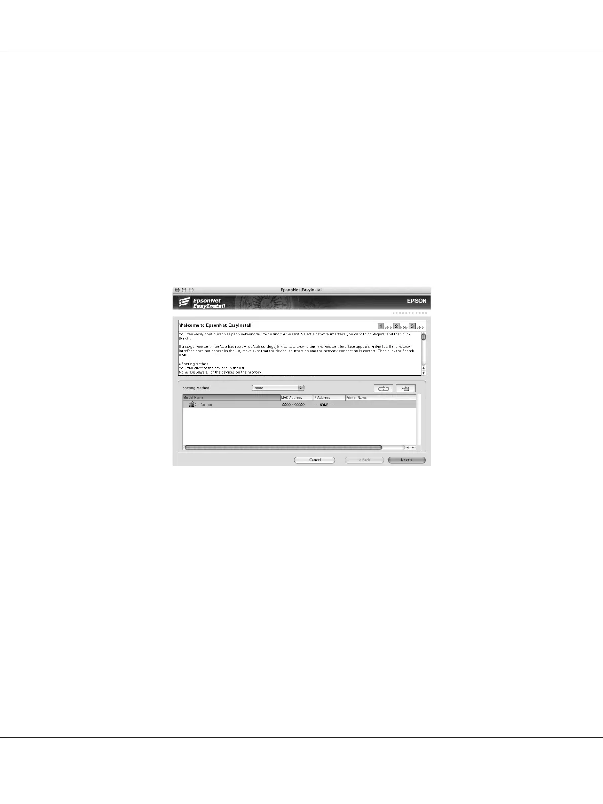 6. EpsonNet EasyInstall starts. Select the printer and then click the Next button.
