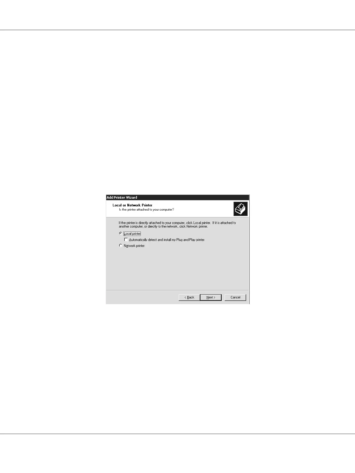 If you are using EpsonNet Print, the setup procedure is different. See “About EpsonNet Print” on