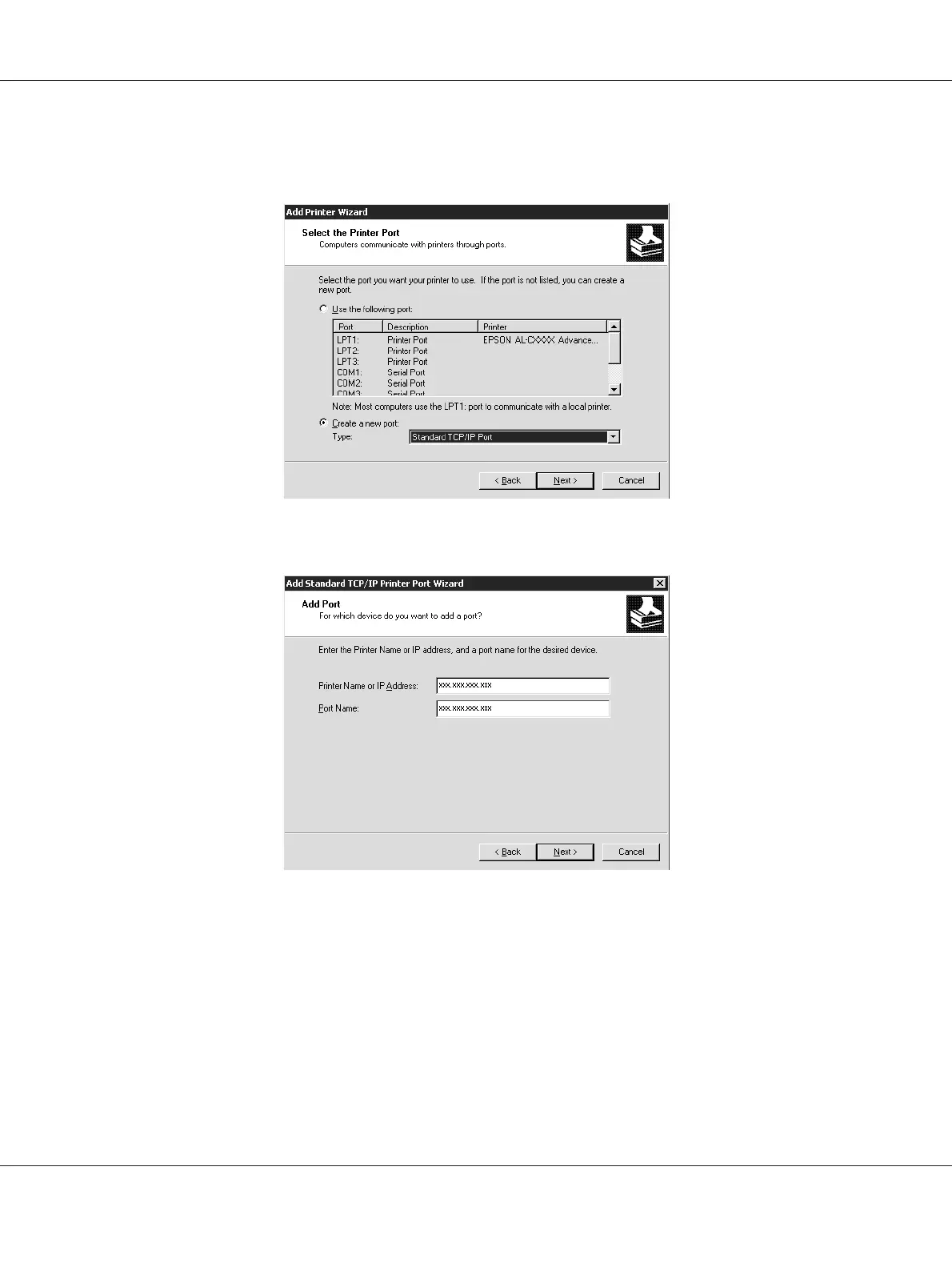 4. Select the Create a new port radio button, and then select Standard TCP/IP Port from the