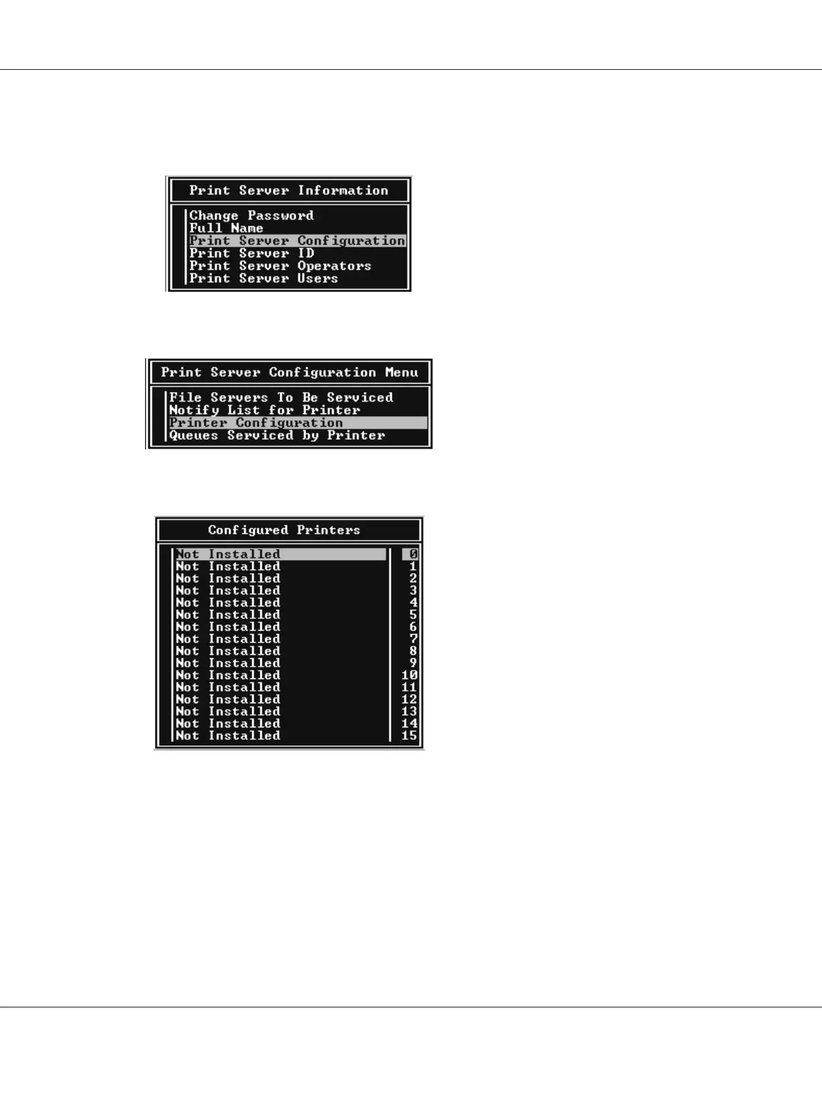 4. Select Printer Configuration from the Print Server Configuration Menu and press Enter.