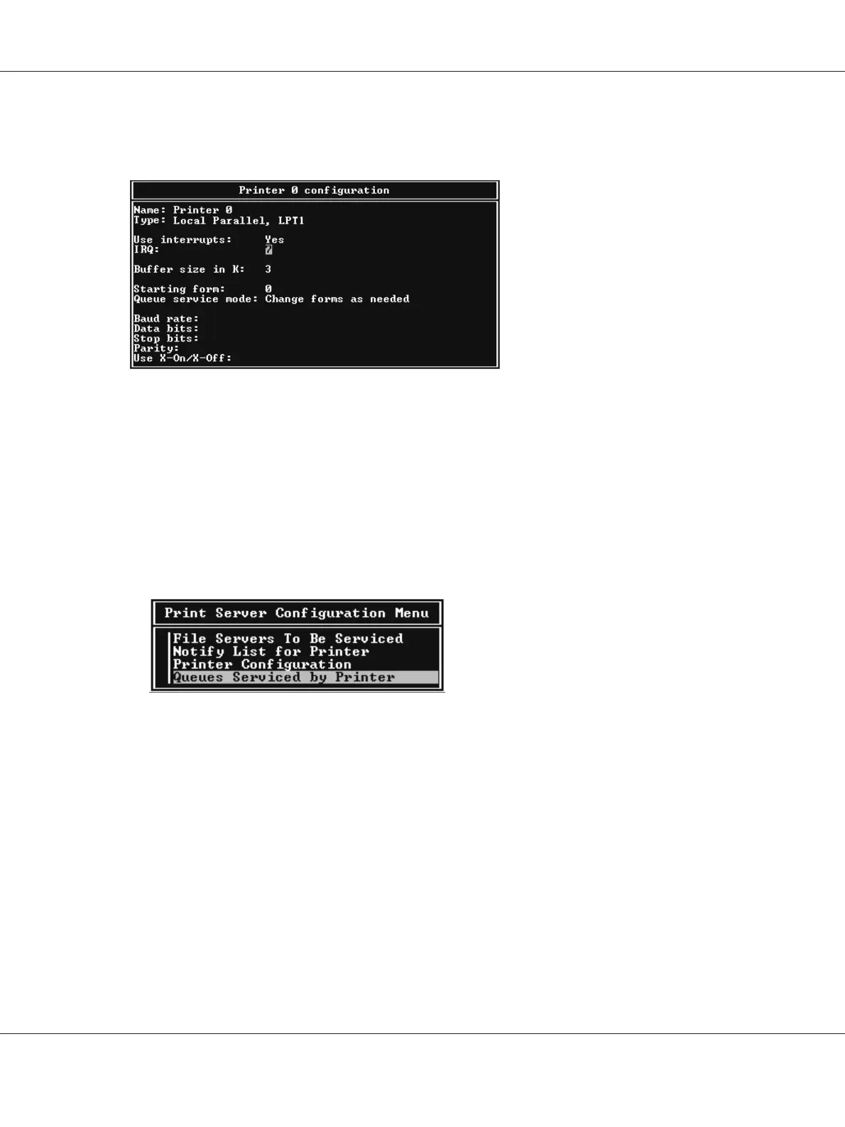 9. Select Queues Serviced by Printer from the Print Server Configuration menu and press