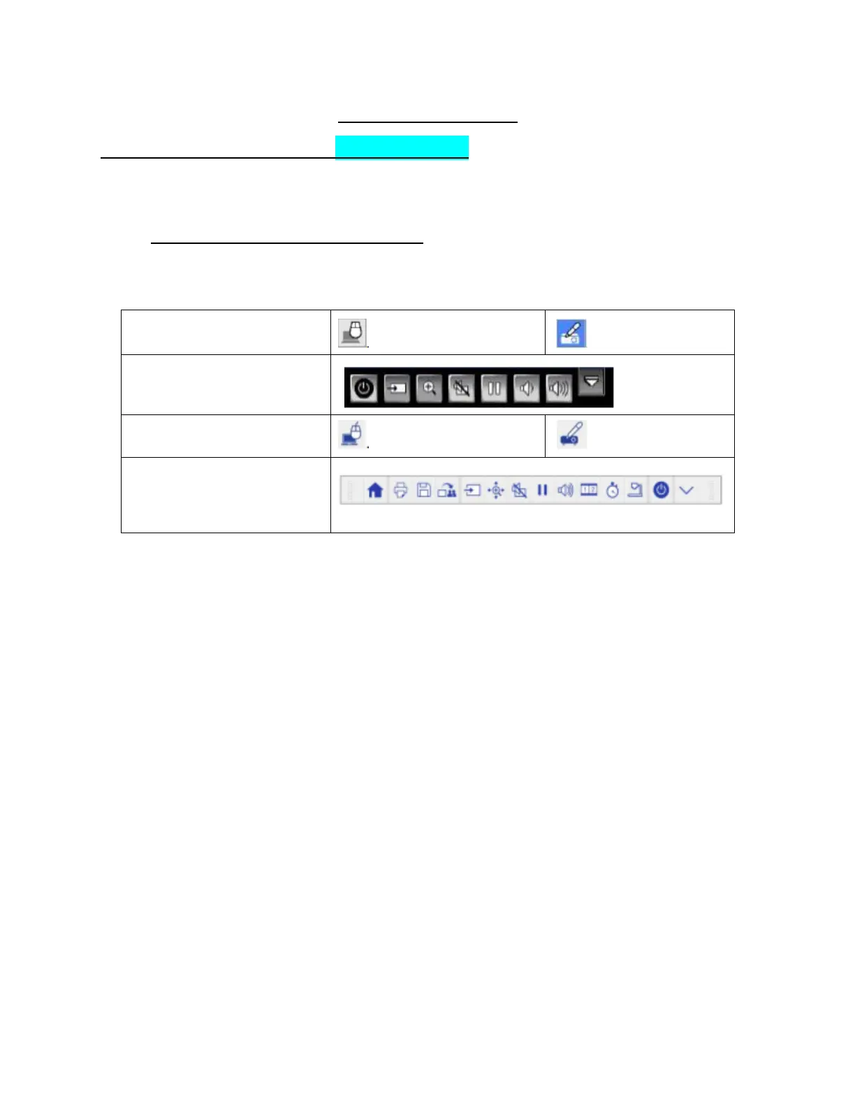 To maneuver through the optional projector functions, a user may use the interactive pen(s) to select a