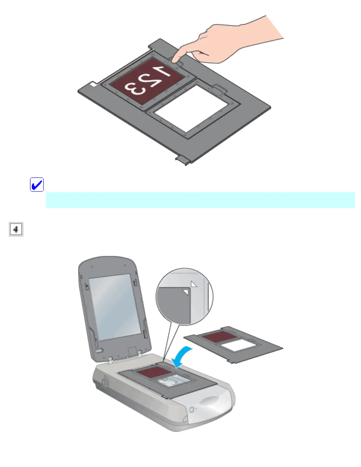 Place the film holder on the document table so that it is aligned with the upper right corner of the