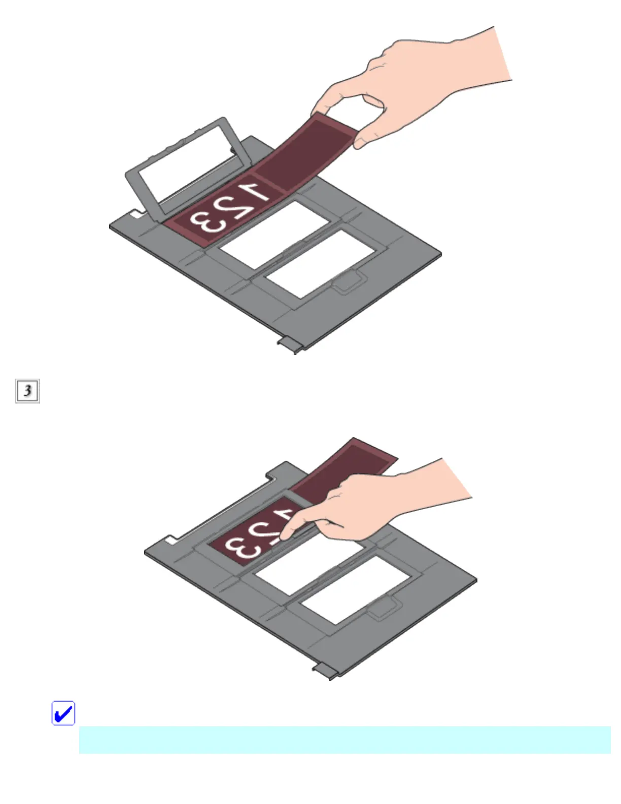 Close the film holder's cover and press until you hear a