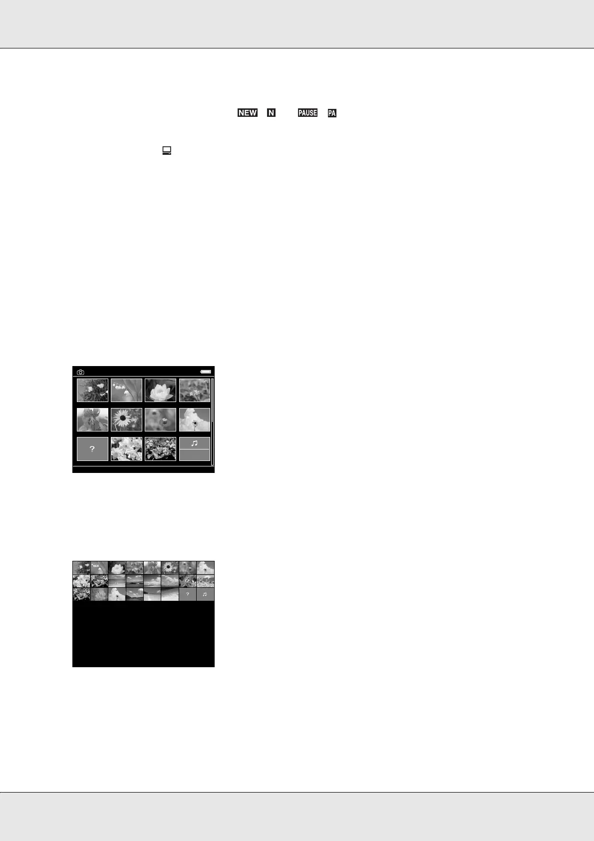 ❏ Thumbnails of the video files which have not been played back, or have not been played back