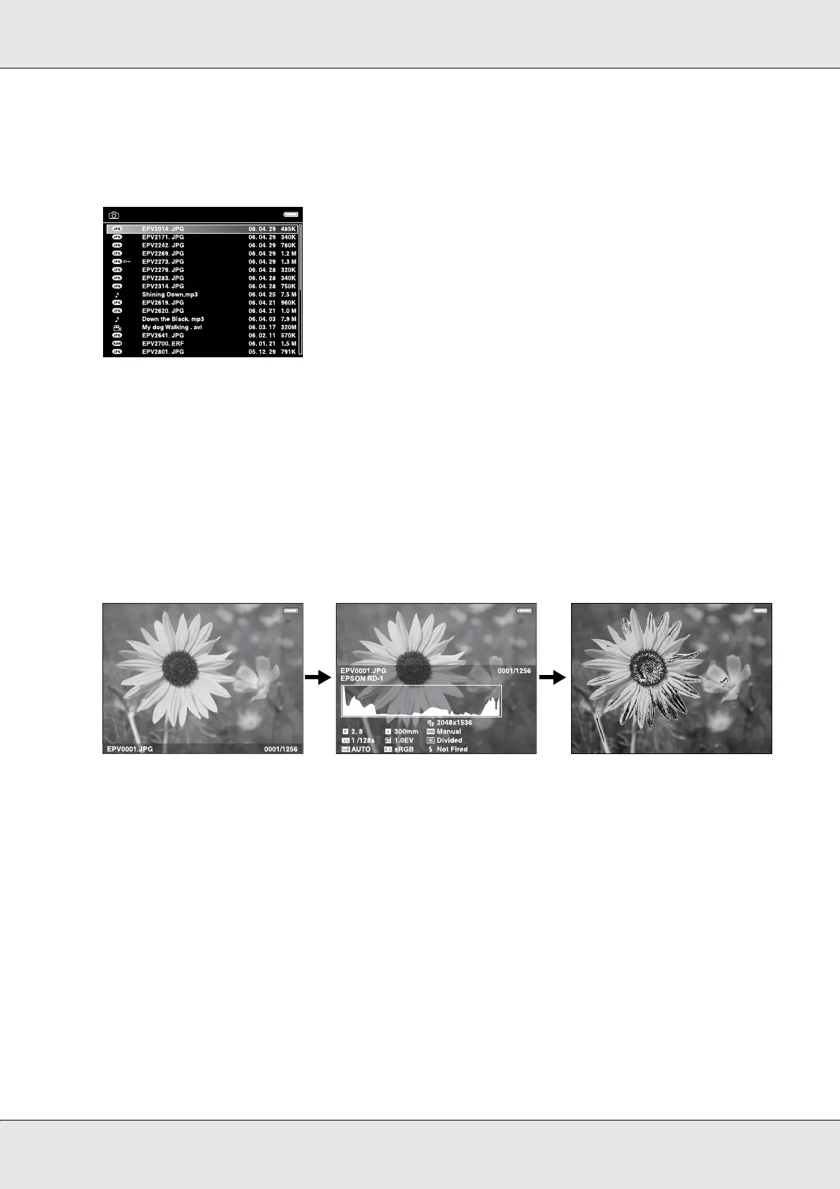 For a photo file, no information is displayed first. You can switch to the file information (as