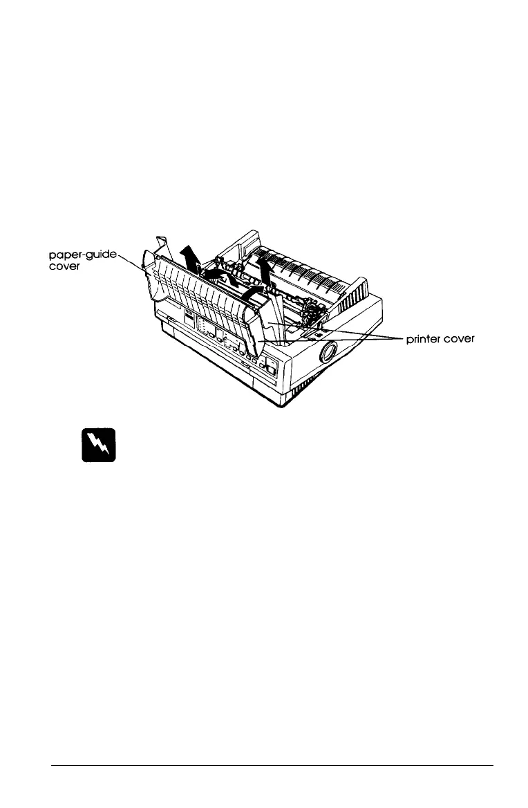 1. Raise the paper-guide cover and rest it on the printer cover.