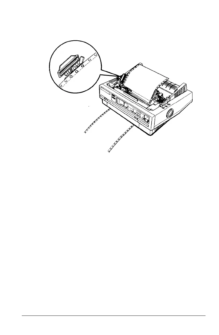 9. Fit the first four holes of the paper over the sprocket pins.