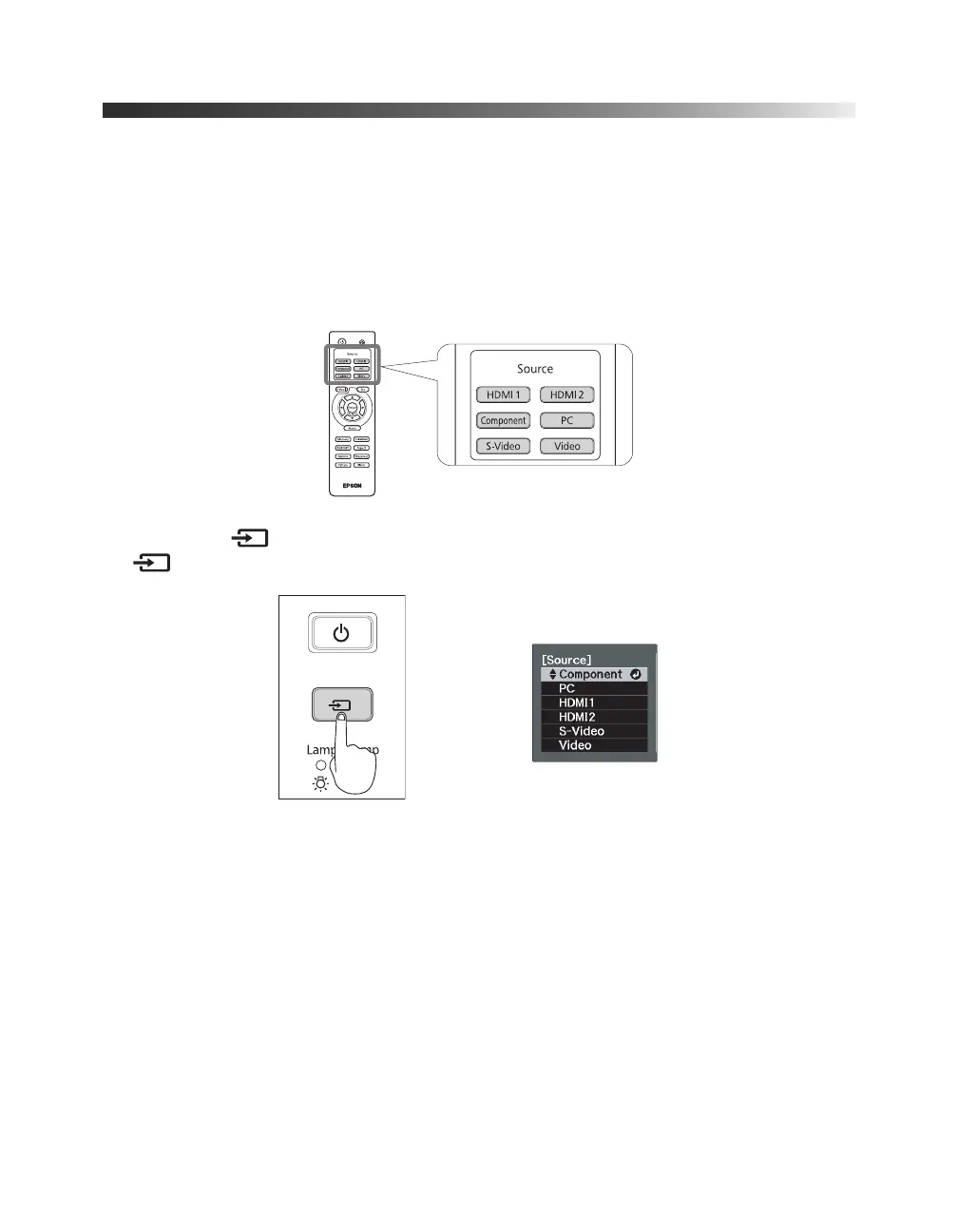The source buttons on the projector and remote control let you switch between images from