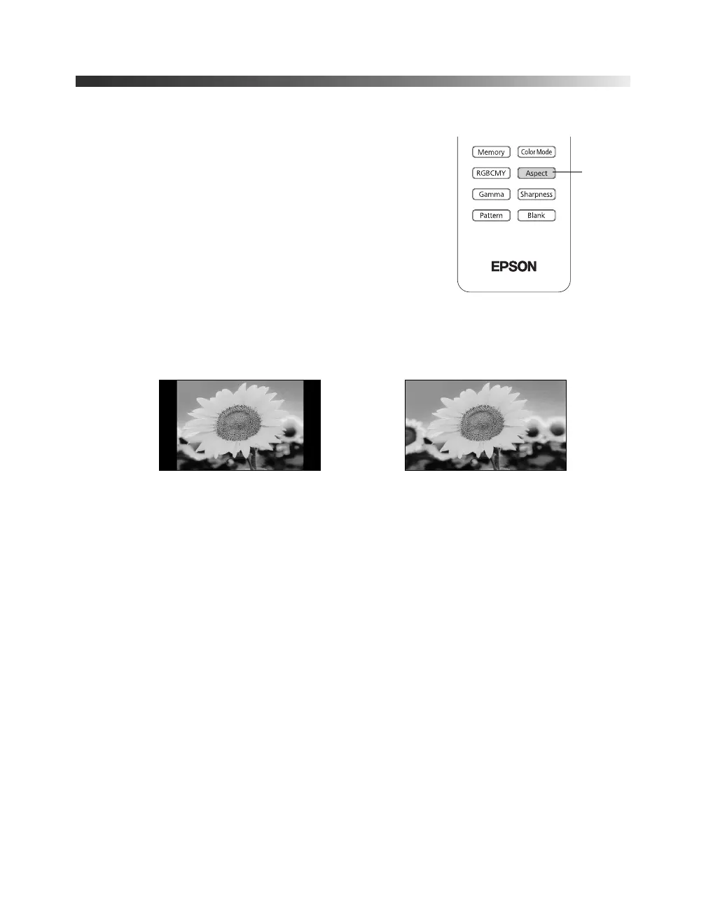 For details on how the projector resizes the picture when you choose an Aspect setting, see