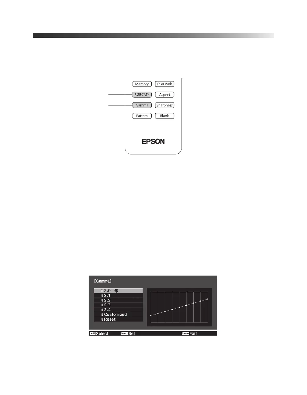 Gamma button. You see the following displayed on the screen: