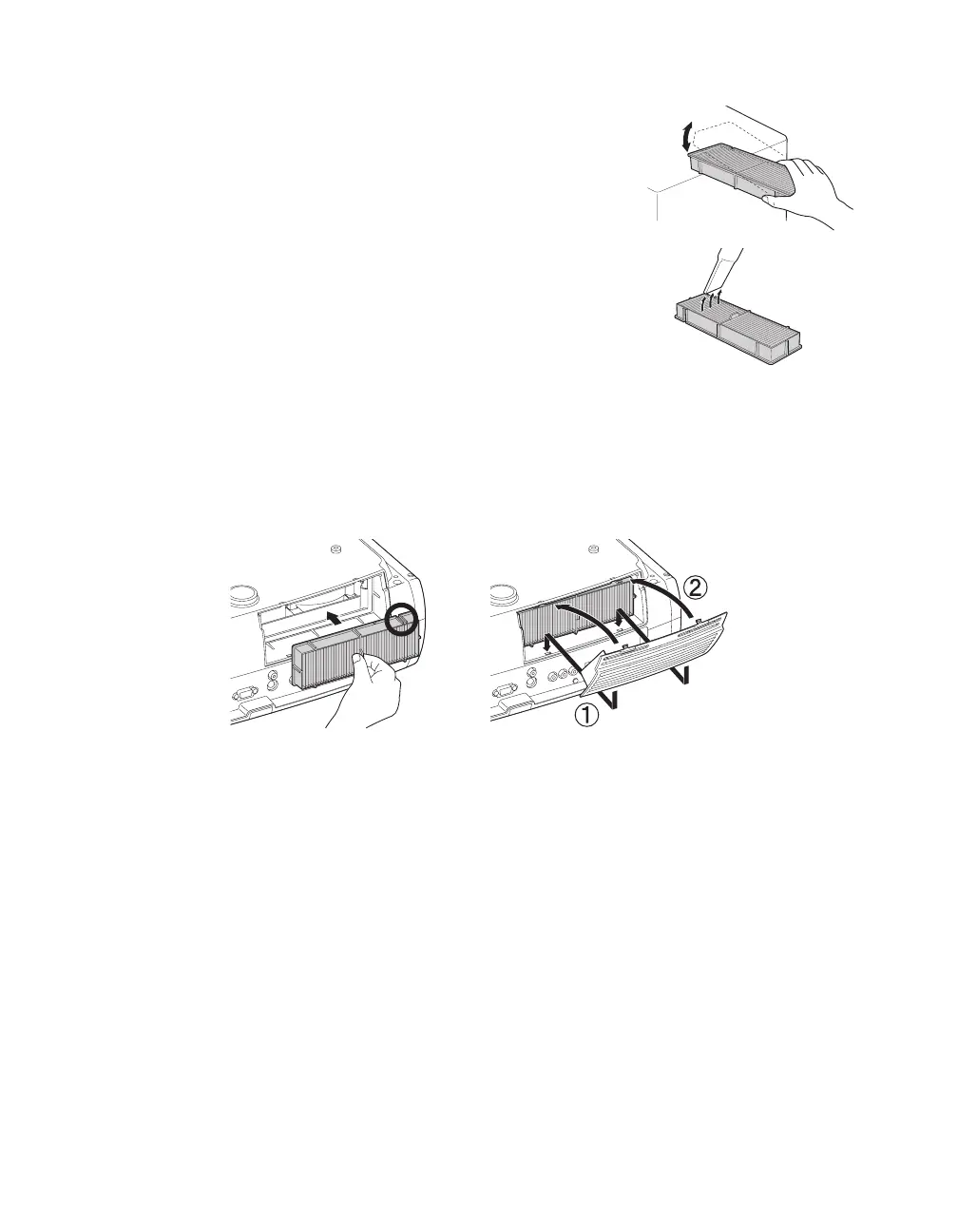 10. Reattach the air filter cover by inserting the tabs as shown and pressing the cover against