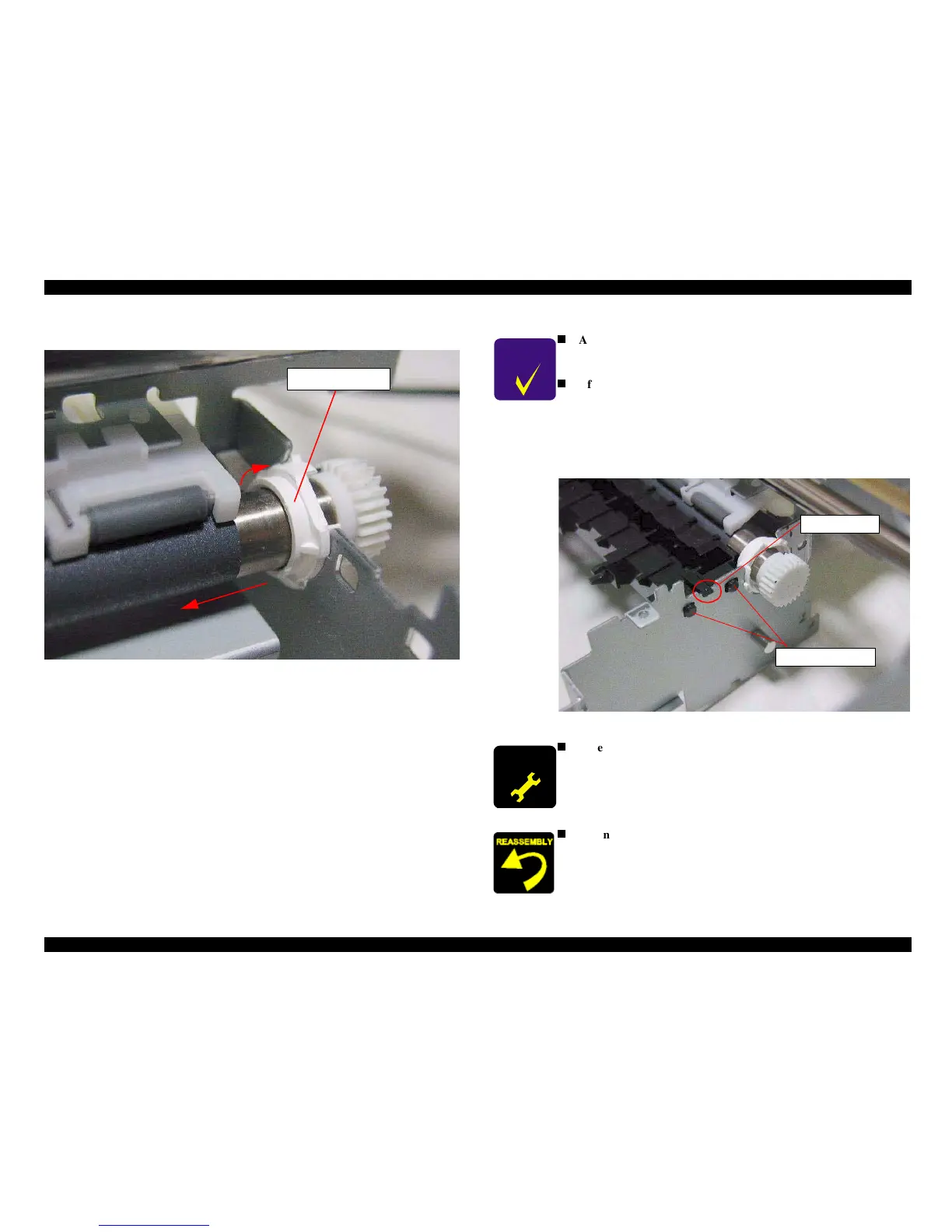 10. Slide the PF roller to the left side along with the both PF roller bushings and